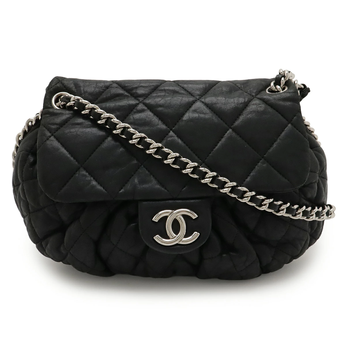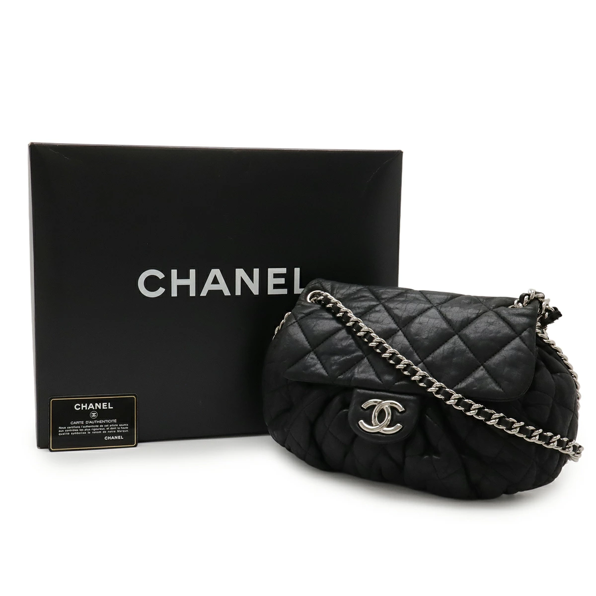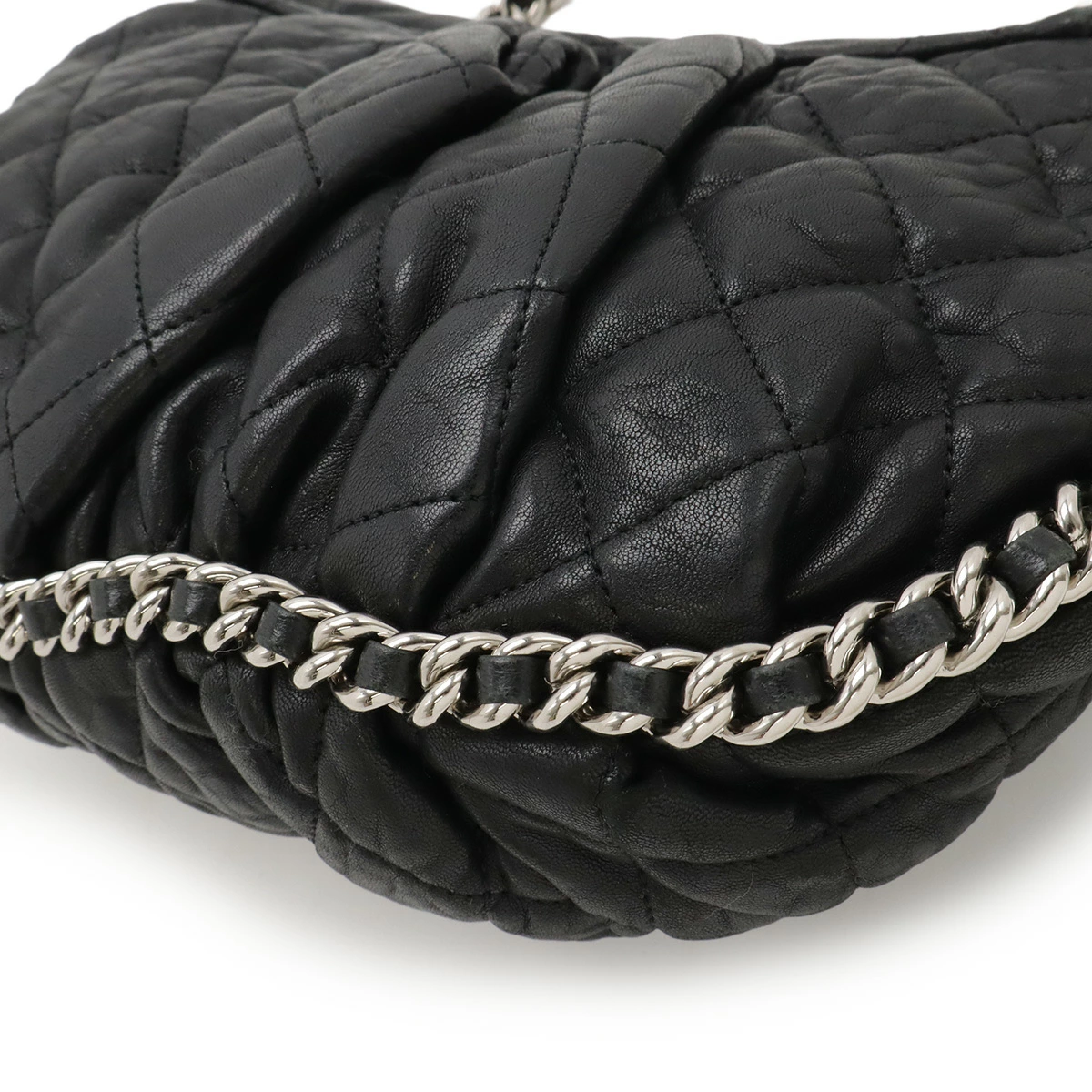 CHANEL Matelasse Luxury Chain Around Chain Shoulder Bag in Black Lambskin Leather with Silver Hardware, A49889 [Pre-owned]