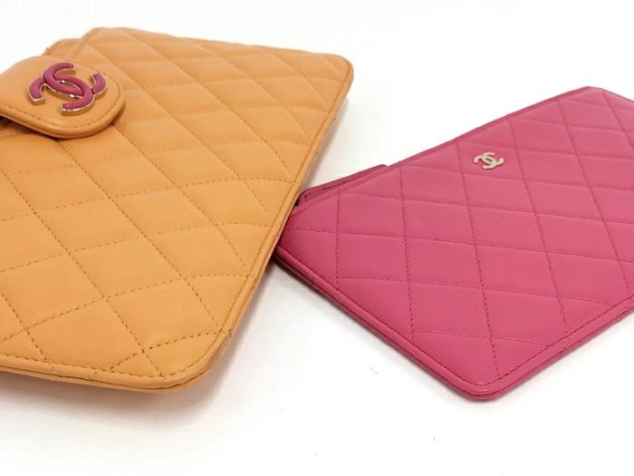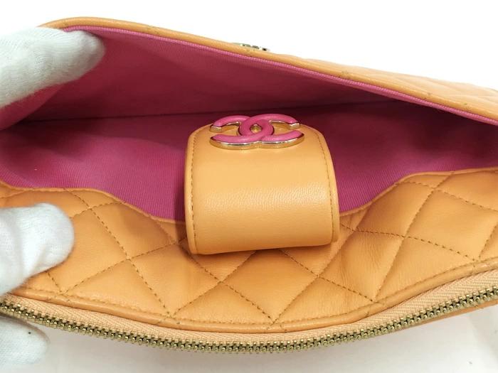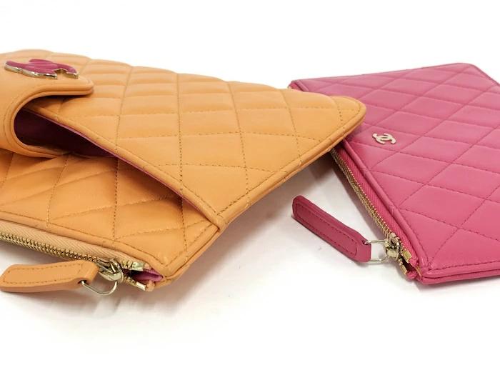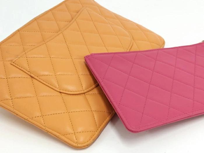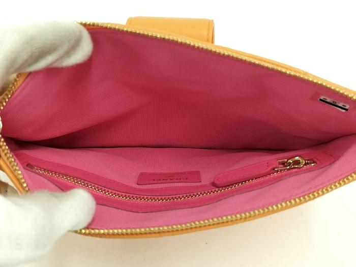 CHANEL Matelasse Pouch Set Leather Orange Pink AP3659