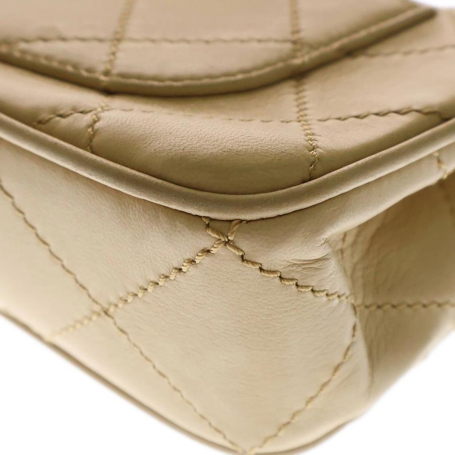 [モデル]マトラッセ ワイルドステッチ Sフラップ Wチェーンショルダーバッグ ベージュ ラムスキン SV金具