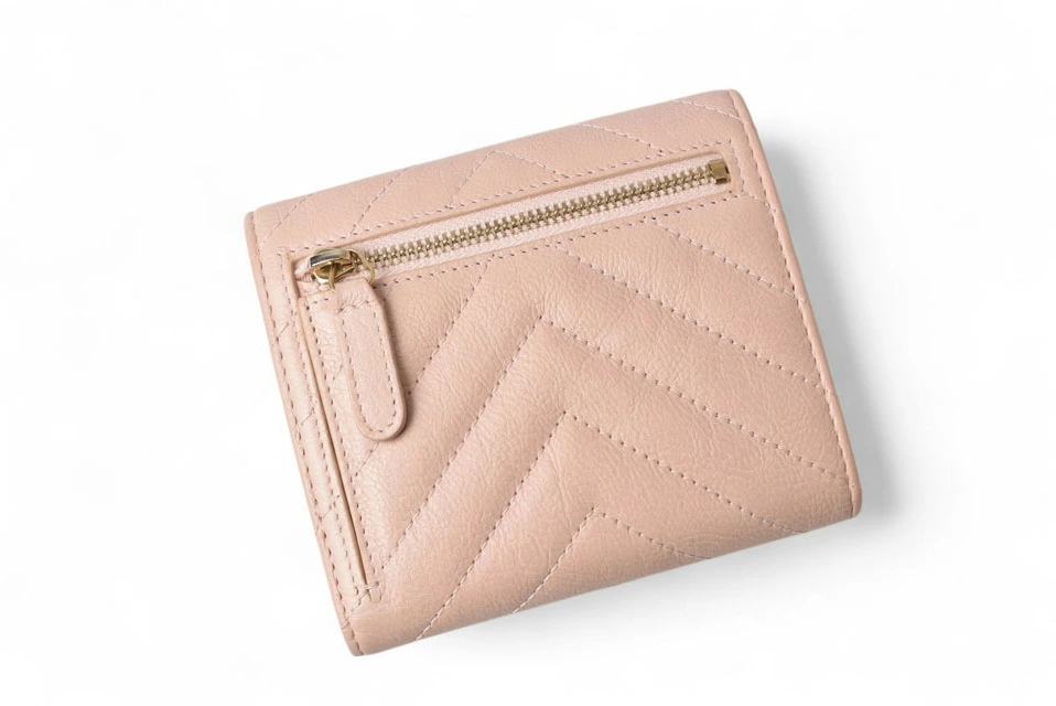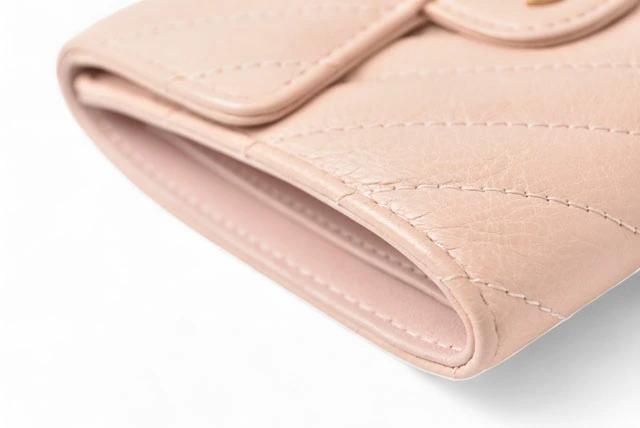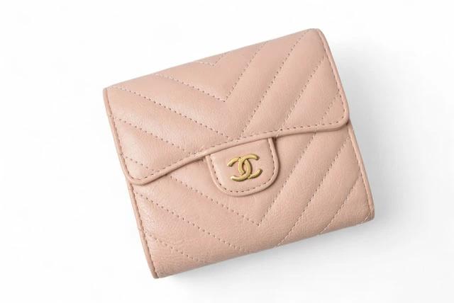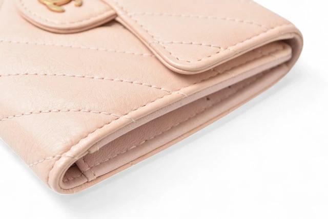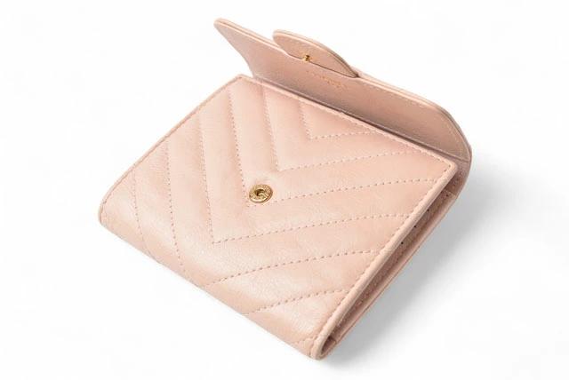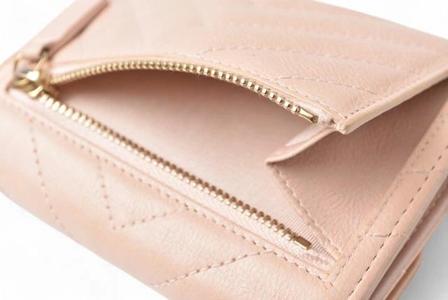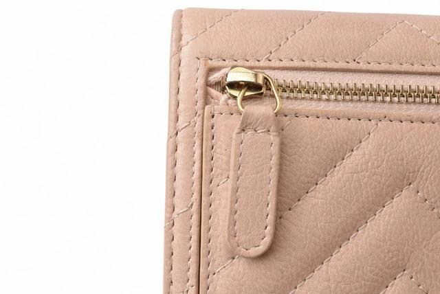 CHANEL 財布 シェブロン レザー ベビーピンク