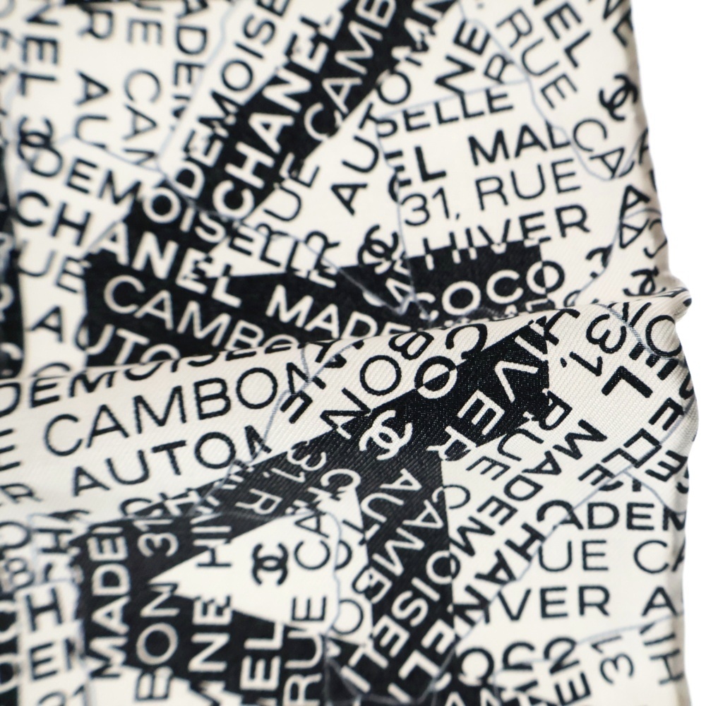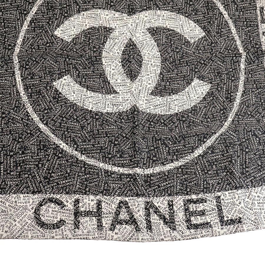 [モデル]モノクロロゴ ココマーク シルク 大判スカーフ ブラック/ホワイト レディース