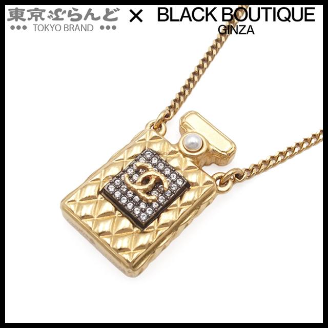 CHANEL Necklace, Gold Metal, Costume Pearl, Rhinestone, Perfume Bottle with Coco Mark, A20A, Women's