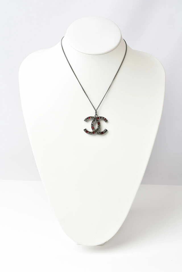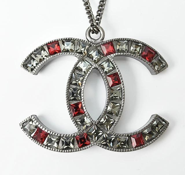 CHANEL ココマーク/CC ラインストーン ガンメタル/レッド