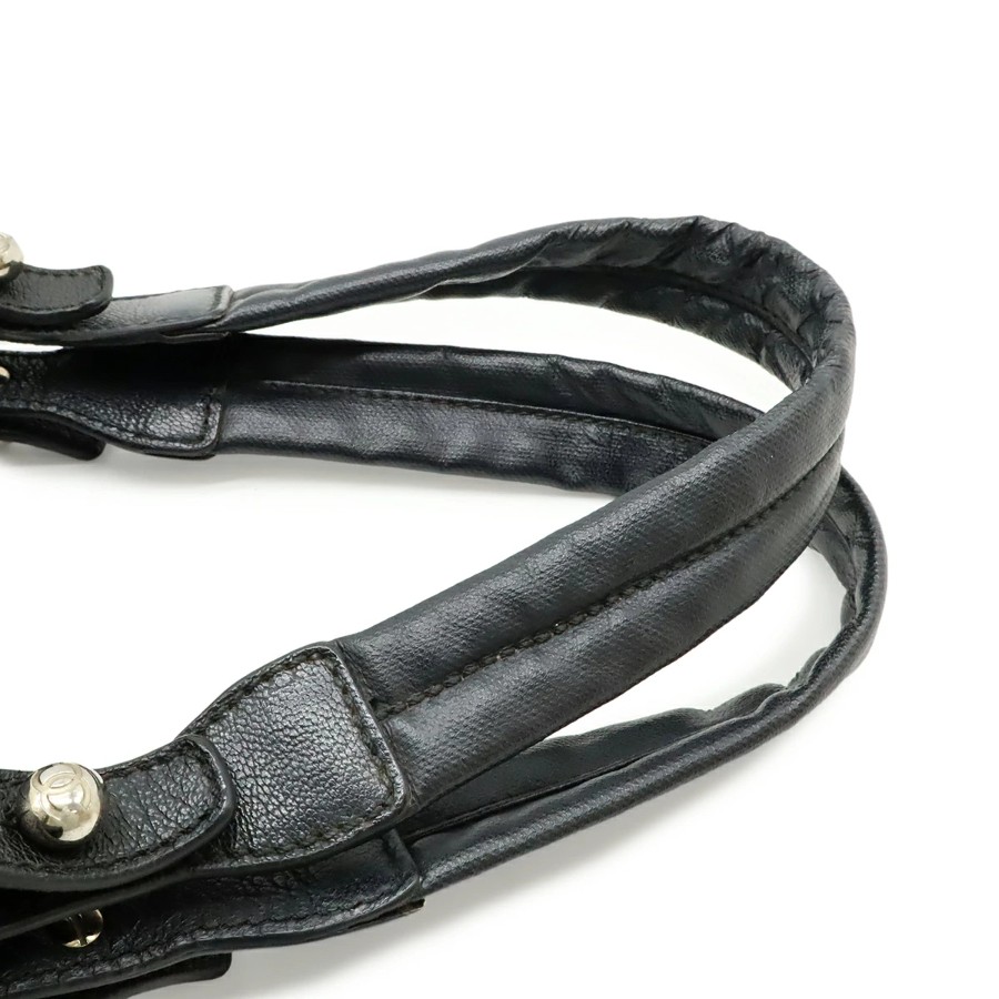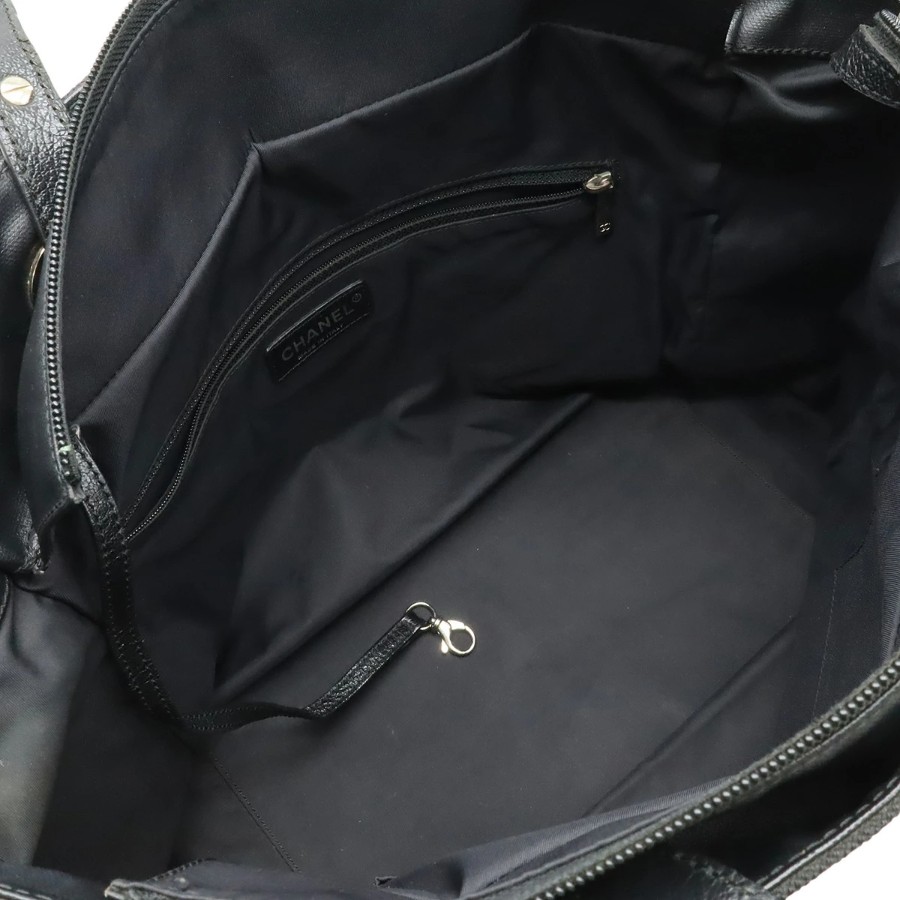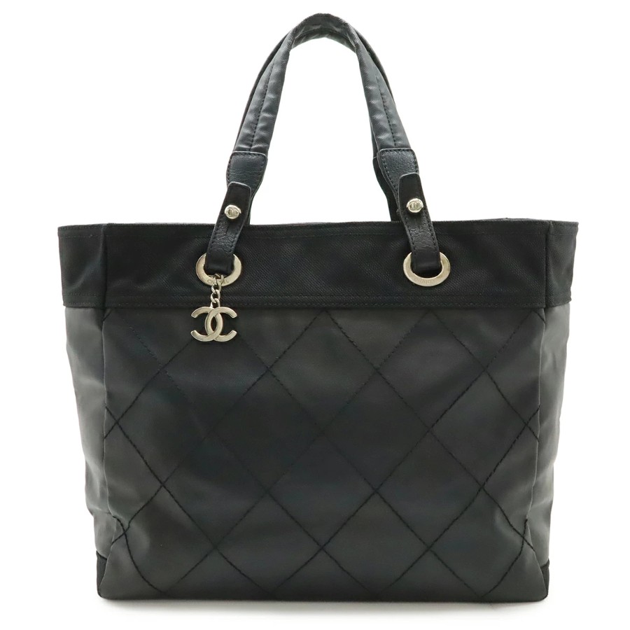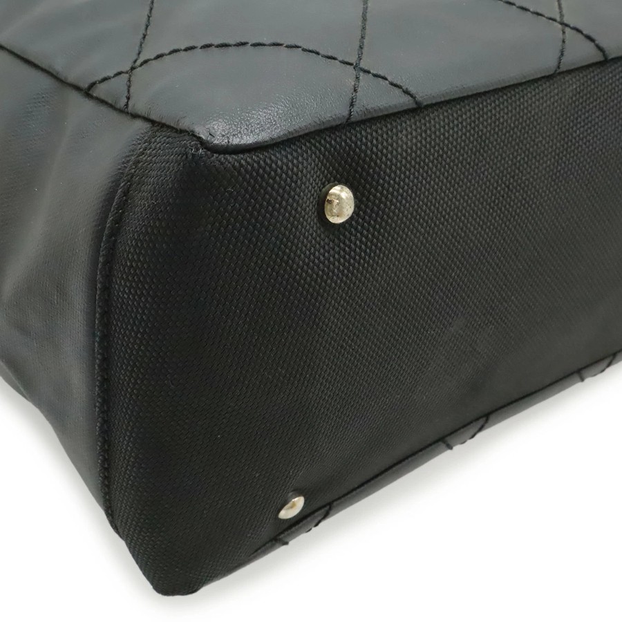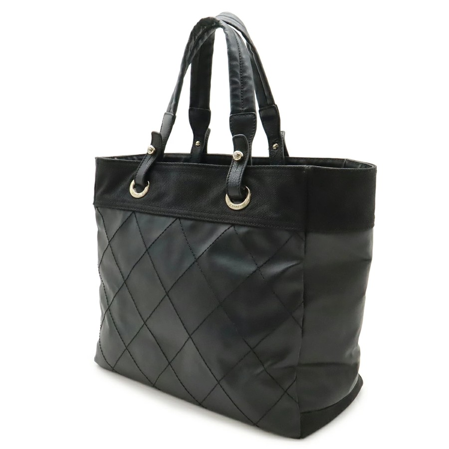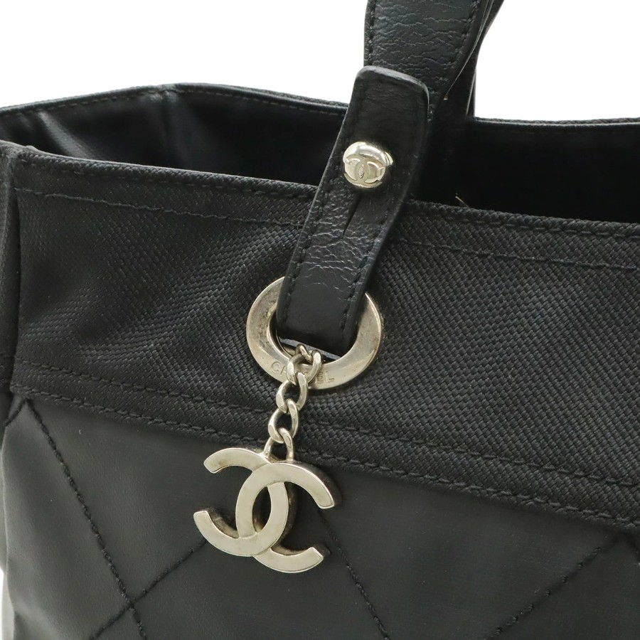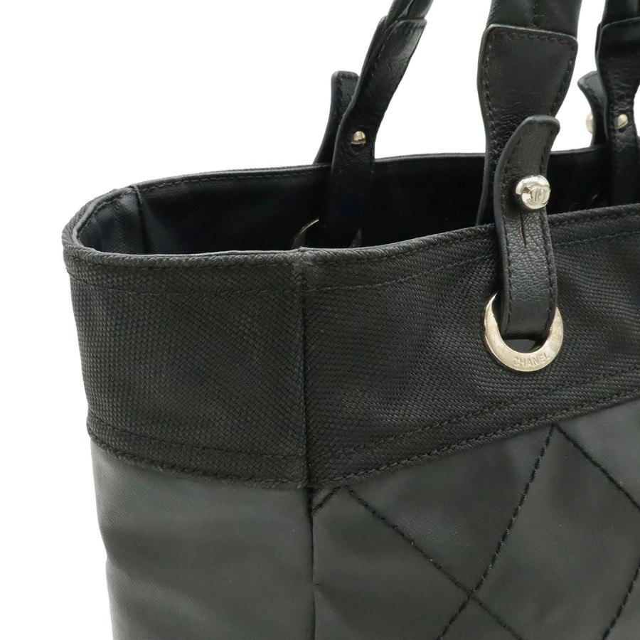 CHANEL Paris Biarritz Tote MM Tote Bag Handbag Coated Canvas Black Silver Hardware A34209 [Used]
