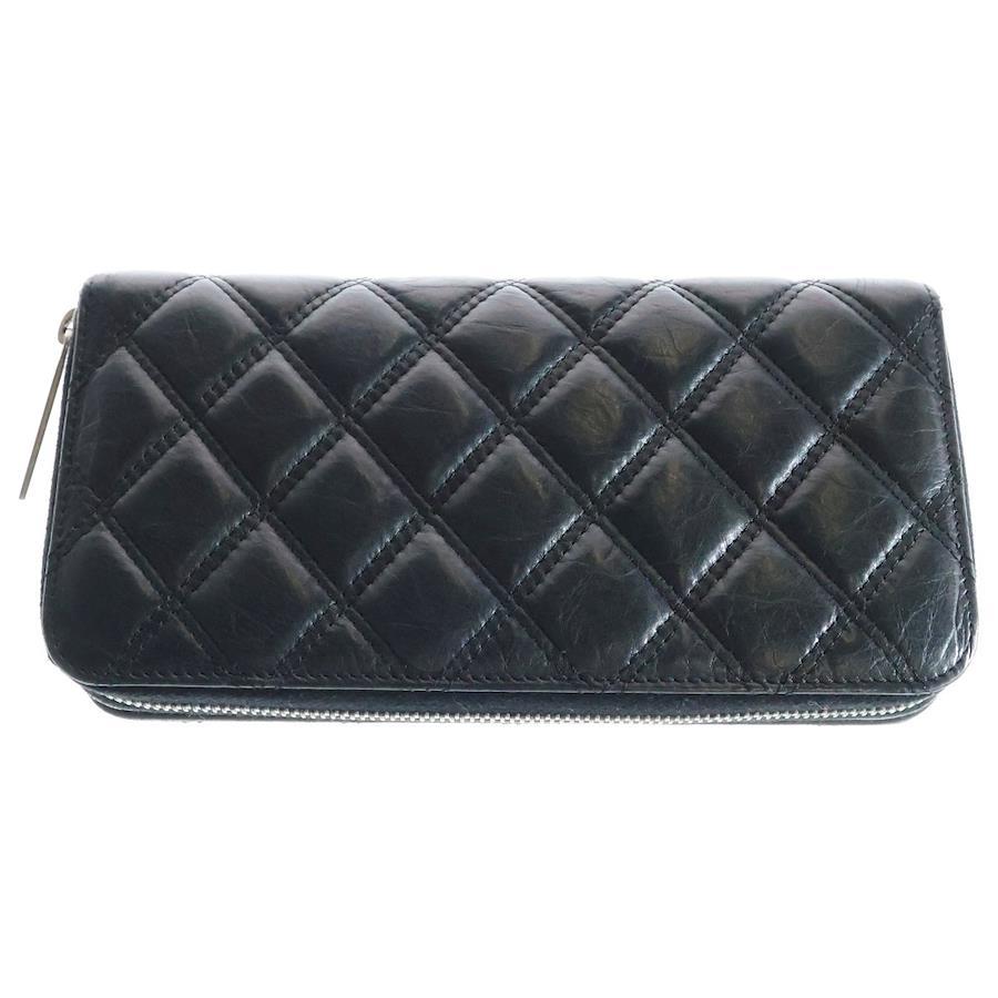 [モデル]PCYN ココマーク マトラッセ ラウンドファスナー長財布 ロングウォレット カードケース ブラック シルバー金具 ラムスキン