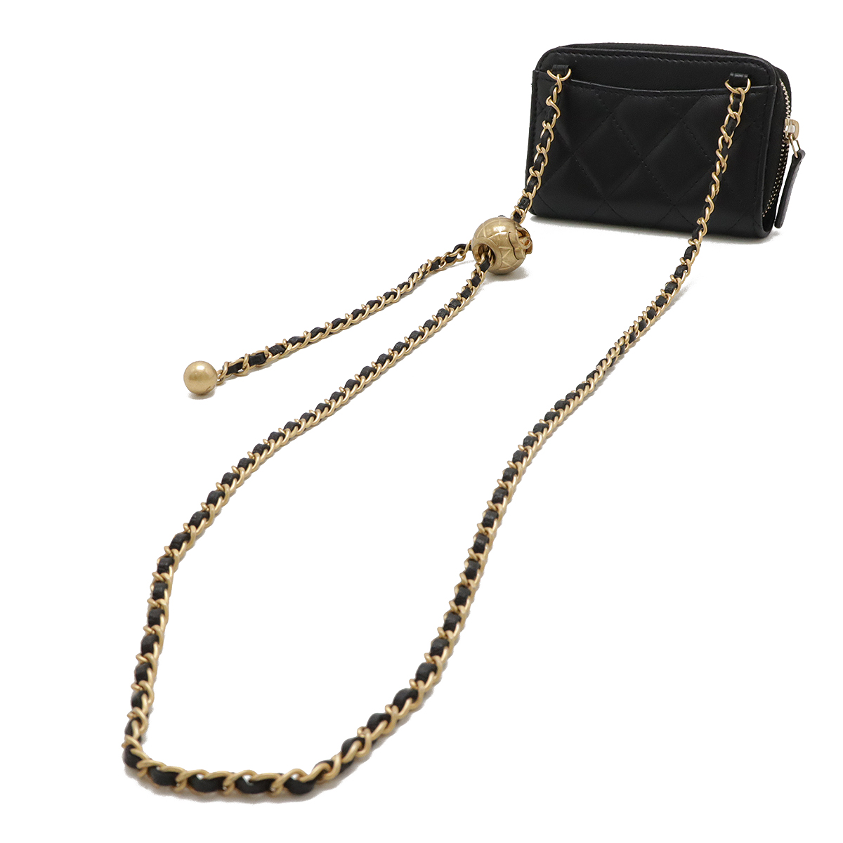 チェーンの長さが調節できるボールが取り付けられ肩掛けはもちろん、斜め掛けも可能な万能なミニチェーンウォレットです。