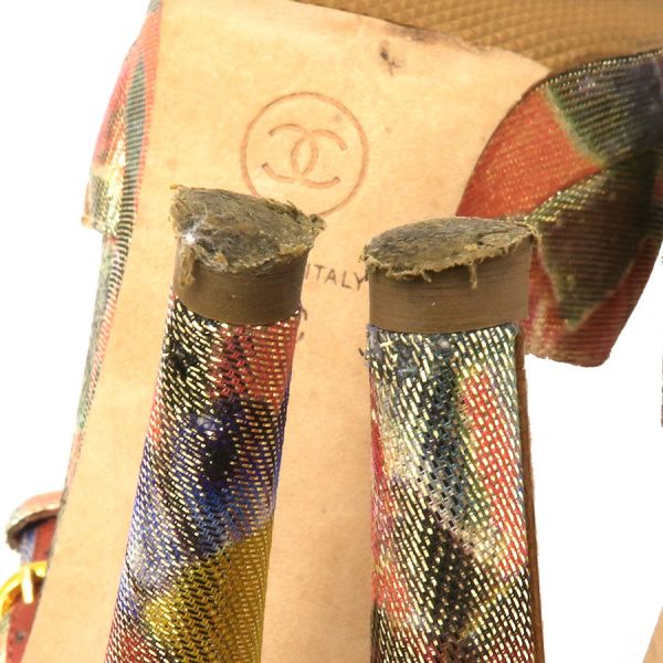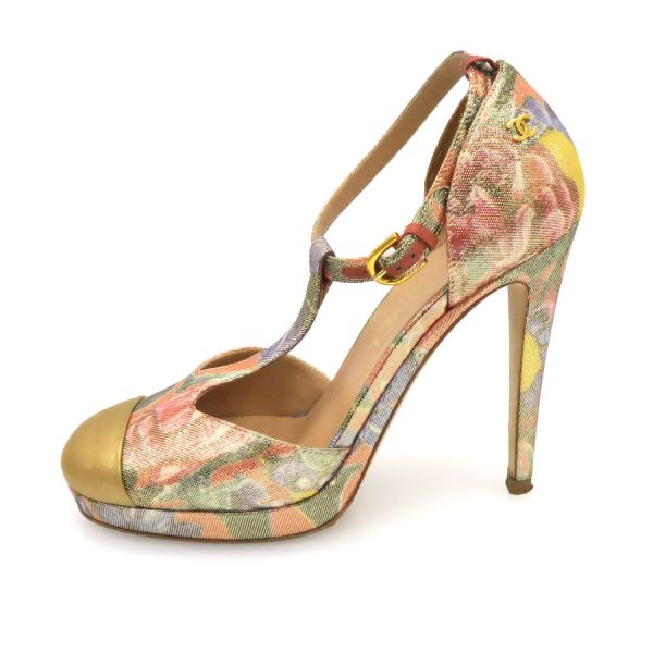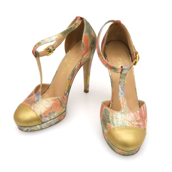 ■採寸#37C 日本サイズ:約23.5cm 甲幅:約8.5cm ヒール高さ:11.5cm■素材表記なし■コメントシャネルからパンプスが入荷しました!細かい金のラメの光沢感が素敵なストラップ付きのハイヒールパンプス☆さりげないココマーク柄やココマークモチーフも施されており、高級感溢れる美術品のようなデザインの一足となっております!靴底のスレ汚れ、ヒールゴムの擦り減り、ヒールにキズ、ストラップ穴にやや穴の拡がりやヨレ、ストラップ剣先のスレキズや毛羽立ち、つま先にスレキズが見受けられる為Bランクでのご紹介となりました。着用時に目立つダメージや汚れではないので、問題なくご着用いただける程度かと思います◎※中古品の為、ヒールのゴムに劣化が出ている場合がございます。新しいゴムに替えて頂いてからのご試着をお勧め致します。
