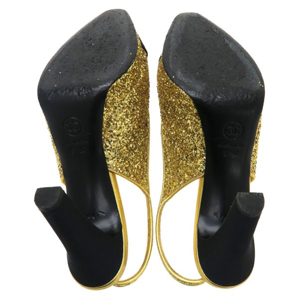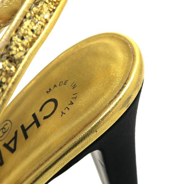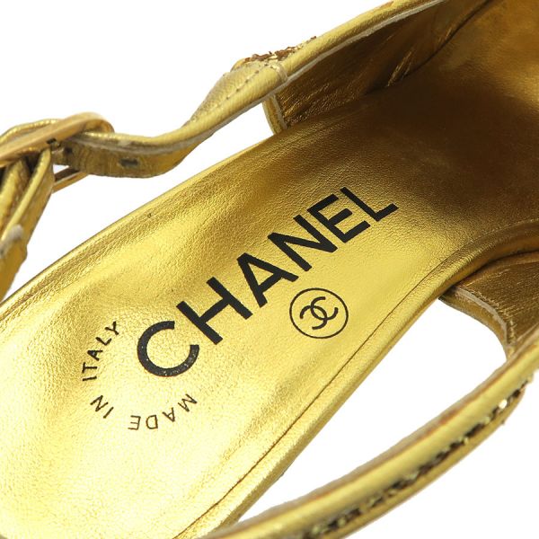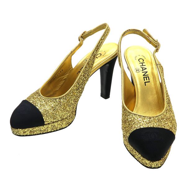 ■採寸#37 1/2 日本サイズ:約24.5cm C幅表記 ヒール高さ:約10.5cm 甲幅:約7cm■素材表記なし■コメントシャネルからパンプスが入荷しました。ゴールドのラメがふんだんに使われたきらびやかで美しい一品です。ラメに光が当たるとまばゆい輝きを放ちます。ラメ部分の小キズや若干のくすみ、ストラップ部分のスレ・剥げ・ヨレ、右踵ソール部分に黒い汚れとキズ、両つま先側ソール底部分にスレ・剥げ跡、外履き跡(特に左側)、ヒール部分の底の減り、ラメ落ちが見受けられる為Bランクでのご紹介です。スレや剥げが目立ちますが、ストラップやソール部分に多く見られるので着用時にはそんなに目立たないと思います。大切な日や気合を入れたい日などに履いてみてはいかがでしょうか。※中古品の為、ヒールのゴムに劣化が出ている場合がございます。新しいゴムに替えて頂いてからのご試着をお勧め致します。