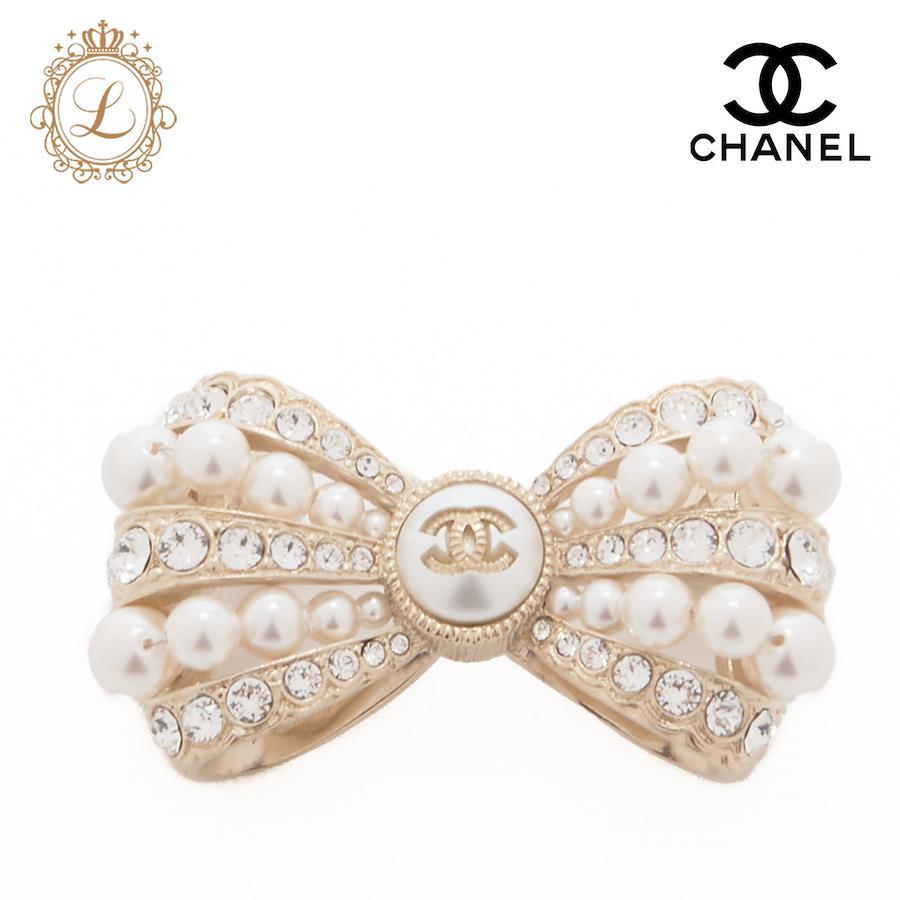 リボン ココマーク パール ラインストーン ブローチ