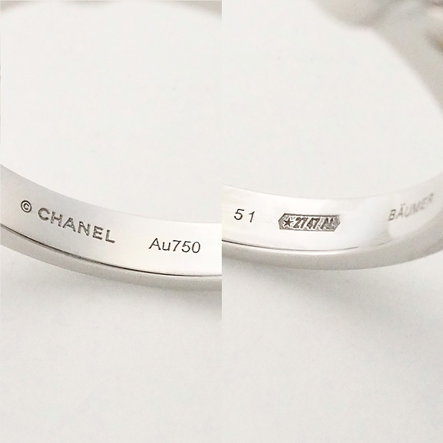Brand: ChanelProduct Name: Ribbon de Chanel Diamond Small Model RingModel Number: J3412Size: #51 (Actual Measurement: Approximately 11)Maximum Width: 2.8mmBack Arm Diameter: 2.3mmWeight: 3.2gMaterial: K18WGStamp: (C) CHANELSerial Number: Au750 BAUMER 51List Price: ¥726,000Accessories: Inner box (dirty, peeling on the inside), Certificate (March 2013) (Domestically authorized)Rank SACondition/Notes: PolishedIf you have any questions about this item, please contact us using the question form.If the stone size is not listed, it is considered to be of unknown size due to the lack of engraving.