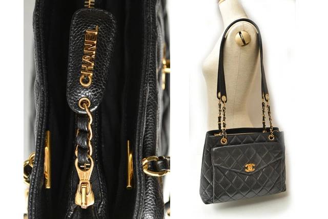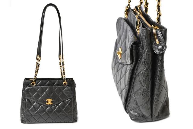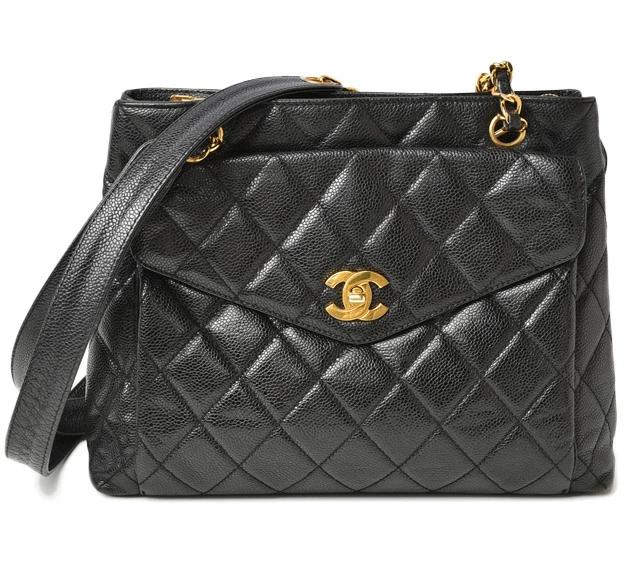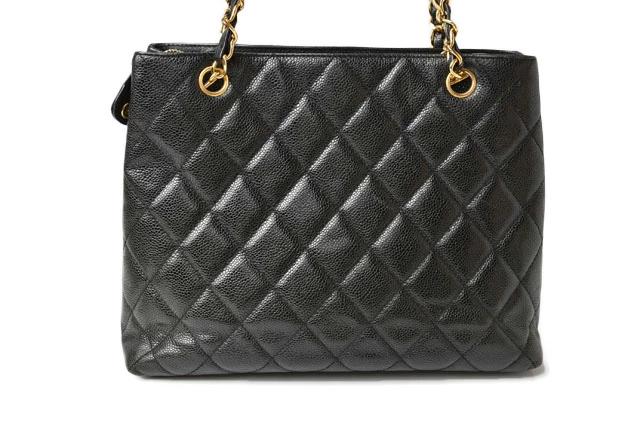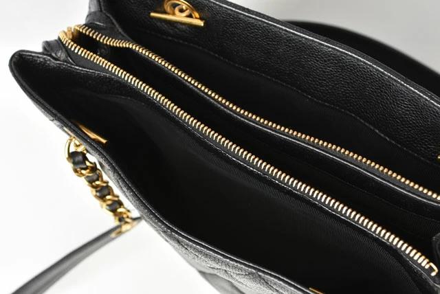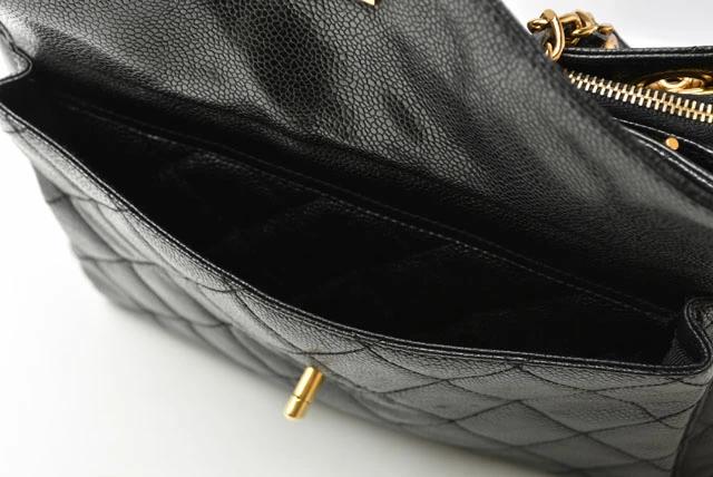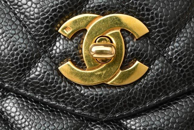 CHANEL ヴィンテージ バッグ キャビアスキン ブラック/ゴールド金具