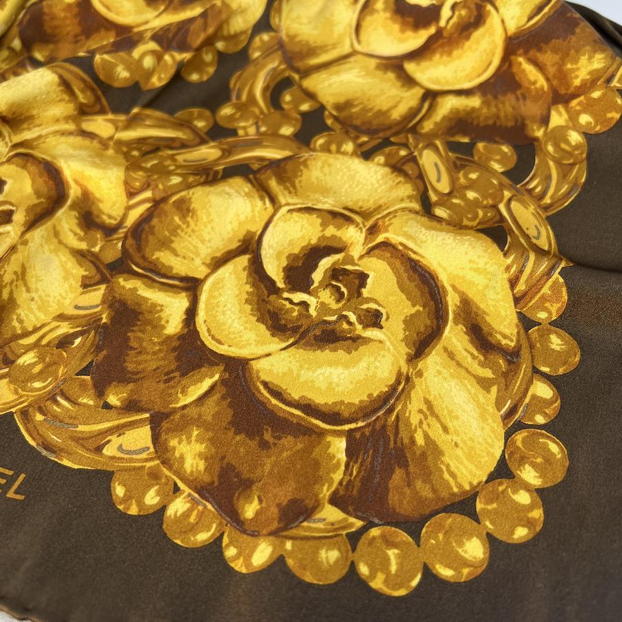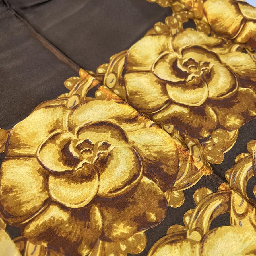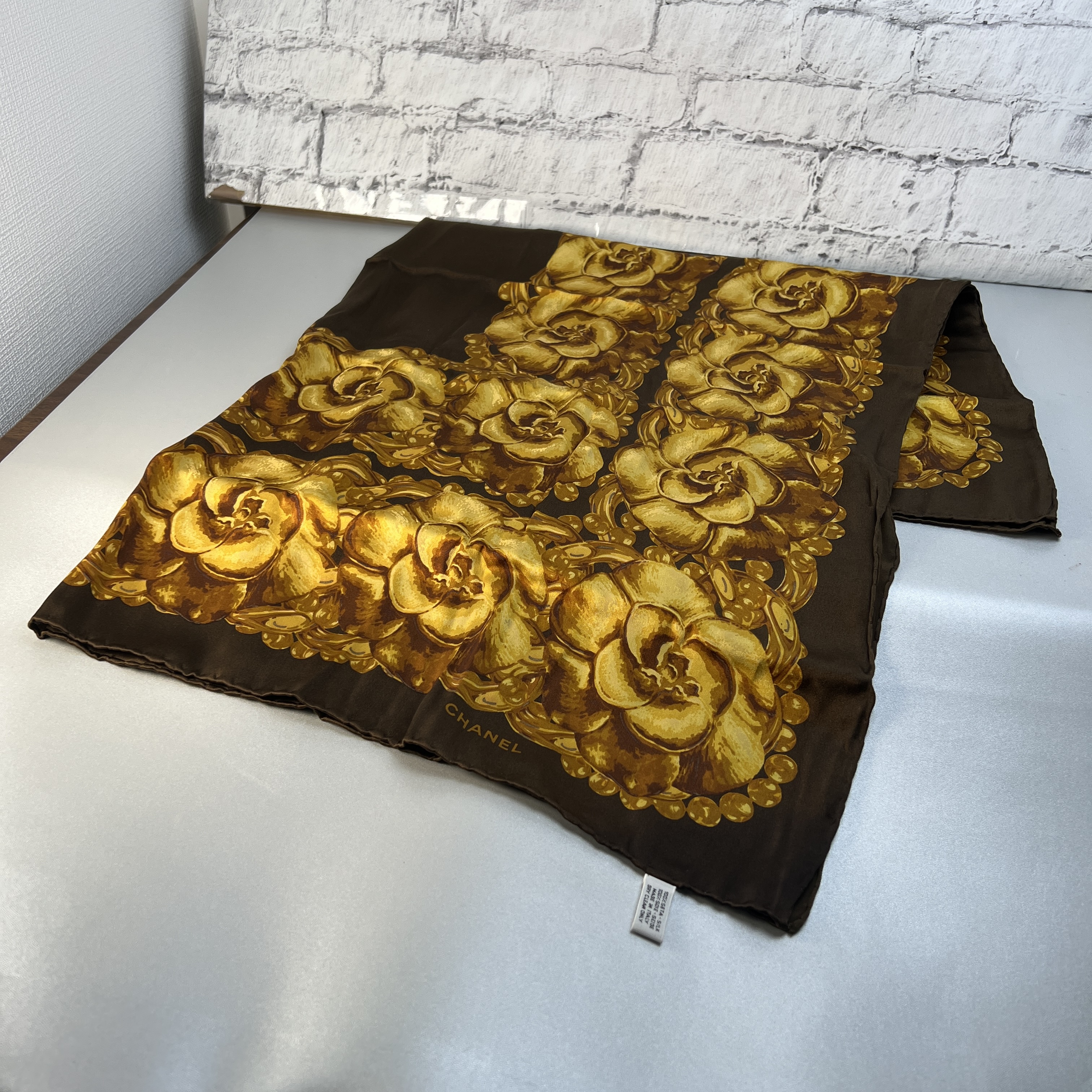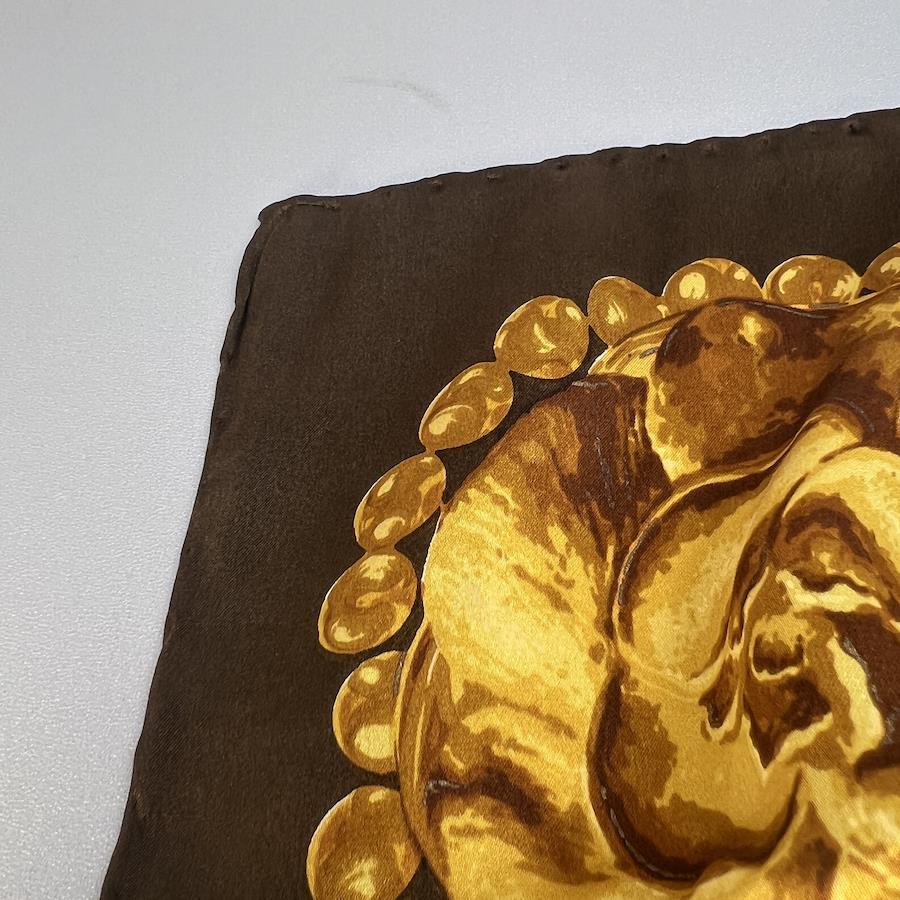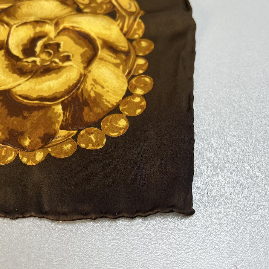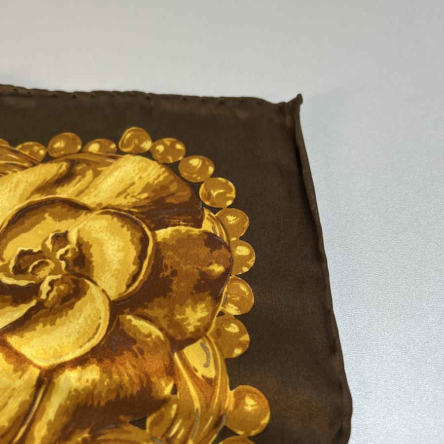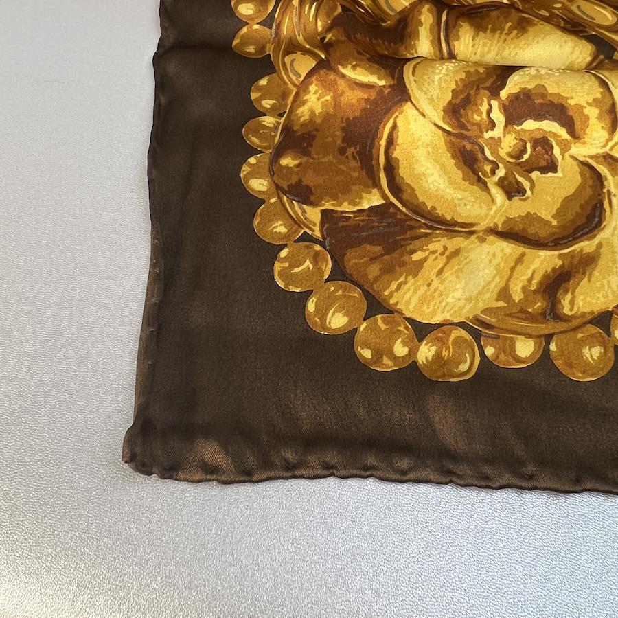 【アイテム】美品 CHANEL シャネル タグ付き シルク スカーフ ブラウン A-9937