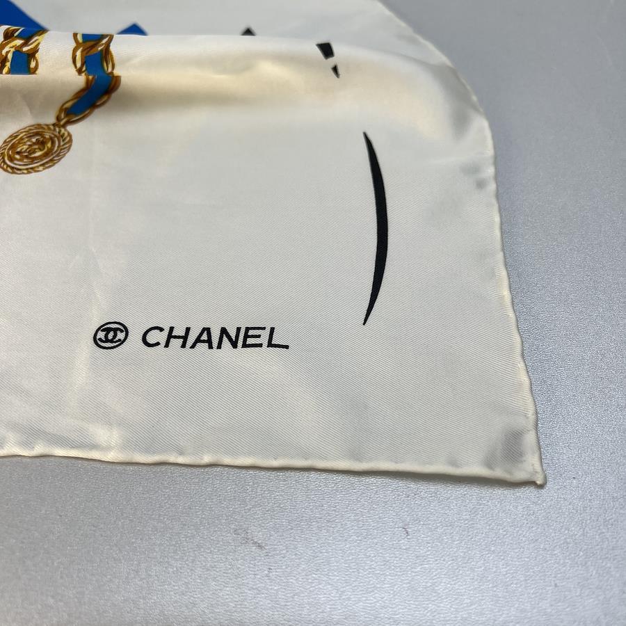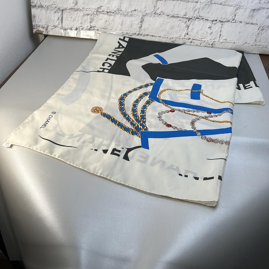 【アイテム】良品 CHANEL シャネル シルク スカーフ ホワイト A-9448