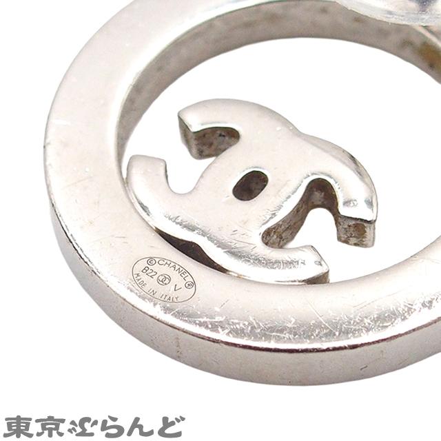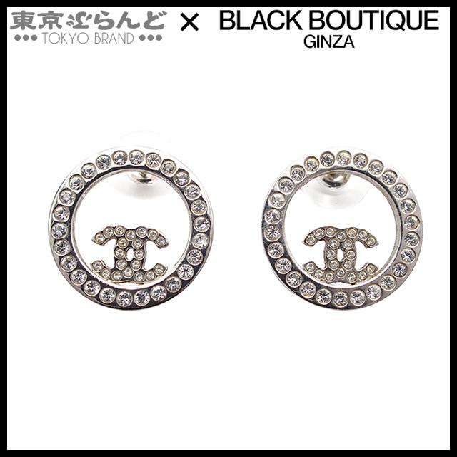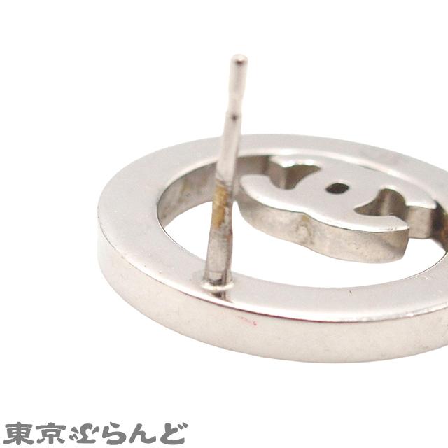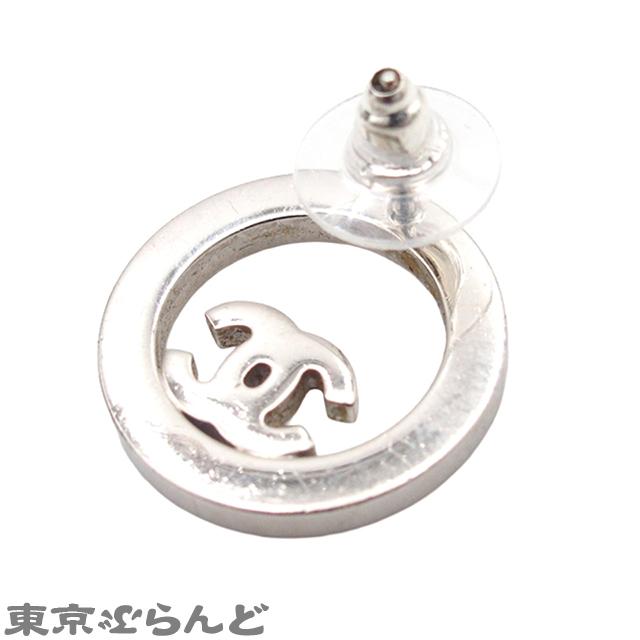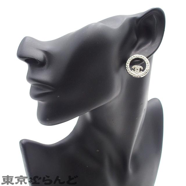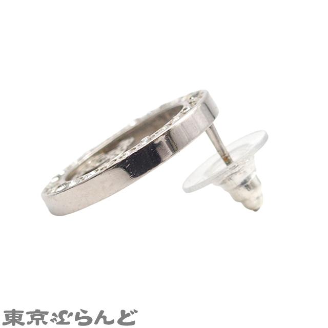 CHANEL Silver Metal COCOmark Rhinestone Circle Earrings, B22V, Women's