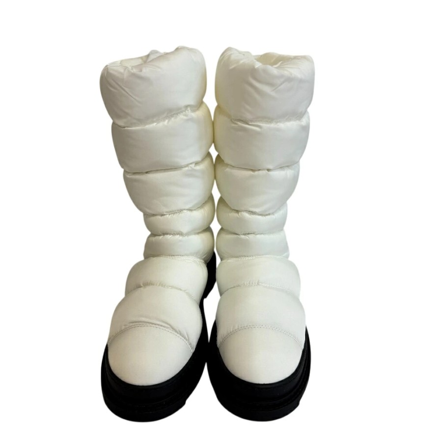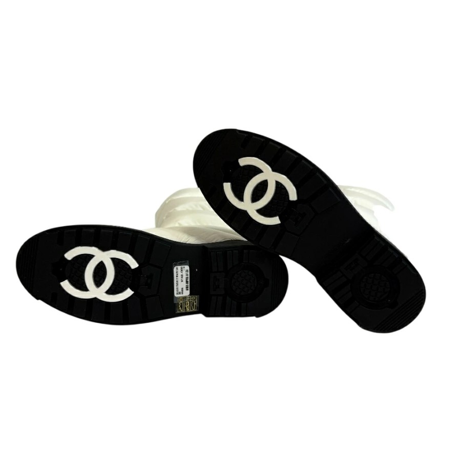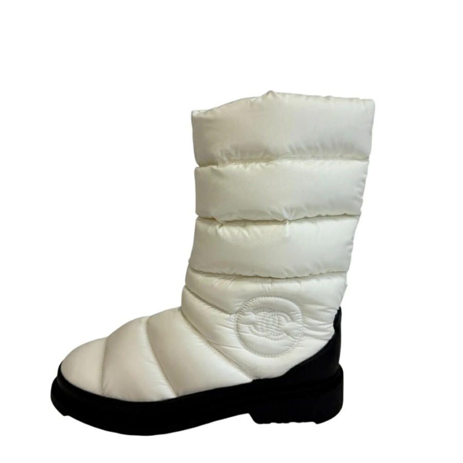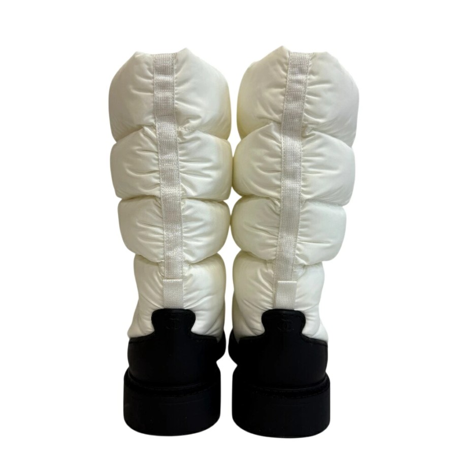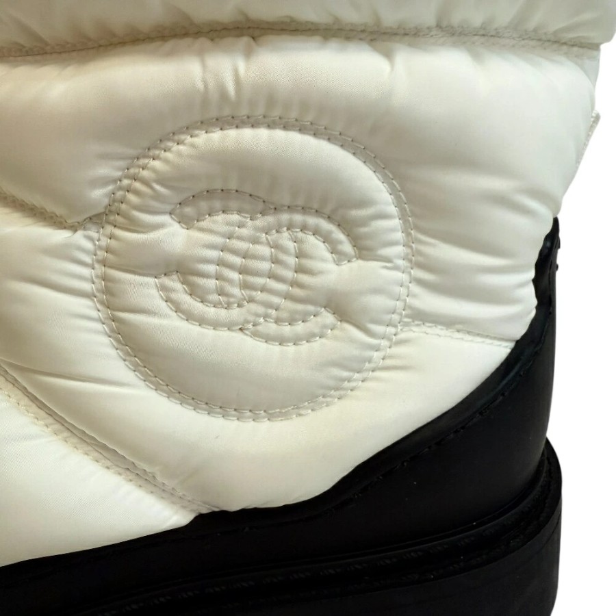 CHANEL Snow Boots, Coco Mark, Quilted Down Boots, White, Women's