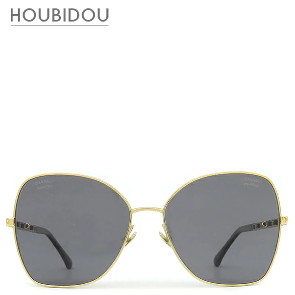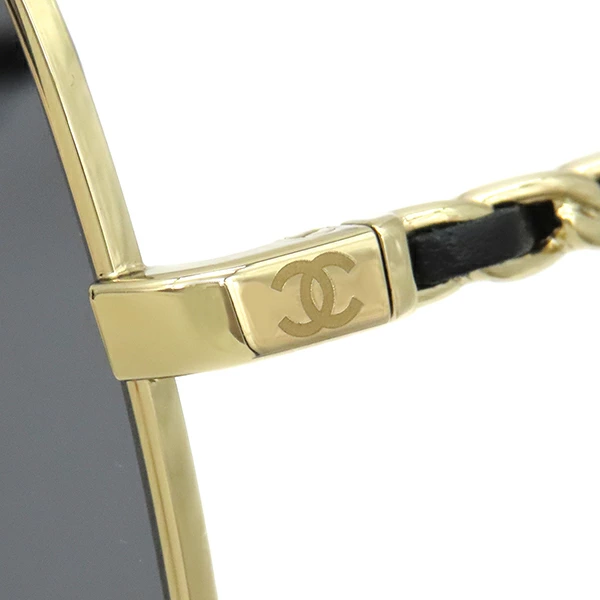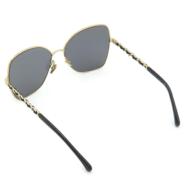 シャネル CHANEL サングラス バタフライシェイプ 59□16 プラスチック メタル ブラック×ゴールド ココマークチェーン CC ゴールド金具 4274-Q レディース 【箱】定番 人気 美品 【中古】