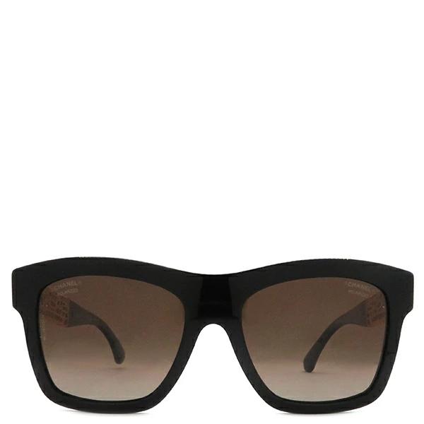 シャネル CHANEL サングラス スクエア シェイプ 54□18 アセテート メタル ブラック×ブラウン ココマーク ブラウンレンズ ゴールド金具 5533-A レディース 【箱】定番 人気 美品 【中古】