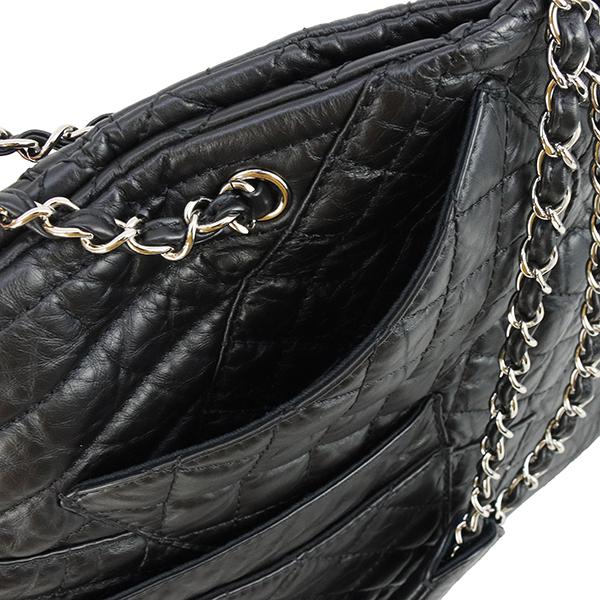 【ブランド】CHANEL シャネル------------------------【商品名】チェーントートバッグ------------------------【ライン】2.55チョコバー / マトラッセ------------------------【型 番】不明------------------------【製造番号】13番台8桁(2009年製~2010年製)------------------------【製造国】イタリア------------------------【カラー】[全体] ブラック[金具] シルバー------------------------【素 材】[外側] エイジドカーフスキン※新品の状態から少しだけヴィンテージ加工を加えた若い牛の革。シャネル素材の中でも独特の風合いがあり、時間とともに更に深い味わいがでるのが特徴。