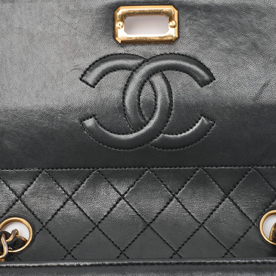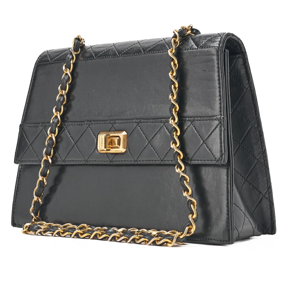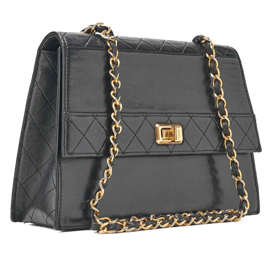 CHANEL Trapezoidal Turnlock Single Flap Chain Shoulder Tote Bag, Lambskin, Black (Gold Hardware), Women's, High-End Brand [Pre-owned]