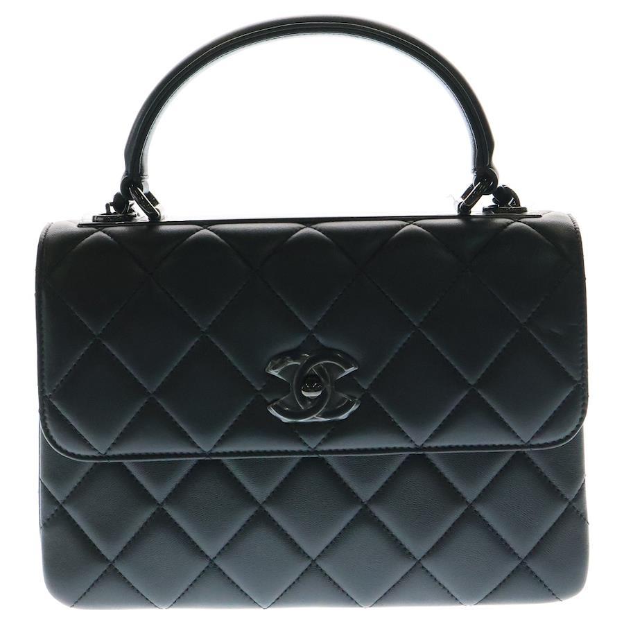 [モデル]トレンディCC トップハンドルXS ブラック ラムスキン ブラック金具 チェーン ショルダーバッグ A92236