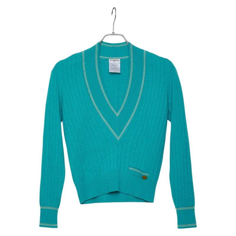 - シャネル Vネック ニット サイズ36 P17792W02771 ライトブルー カシミヤ レディース CHANEL 【中古】