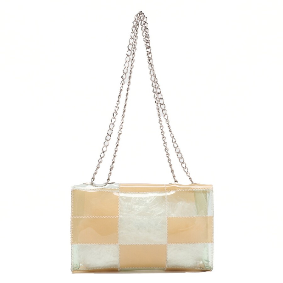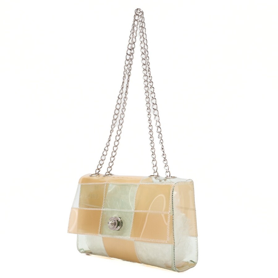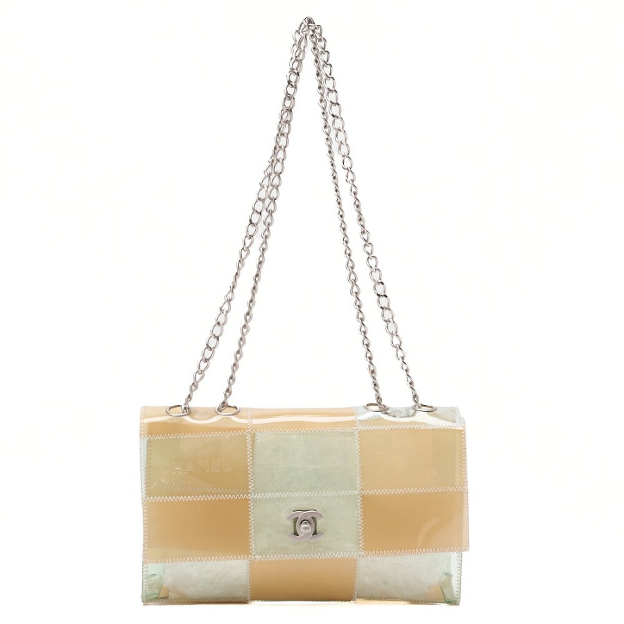 CHANEL Vinyl Chocolate Bar Single Flap Chain Shoulder Bag, Beige (Silver Hardware), Women's High-End Brand Bag [Pre-owned]