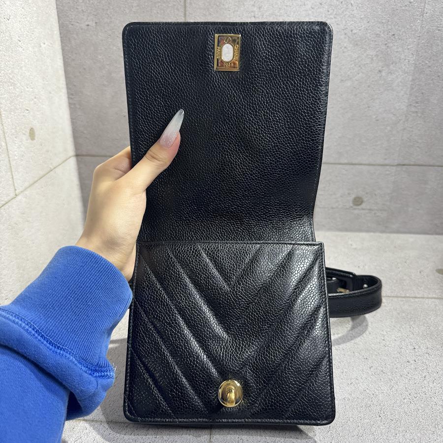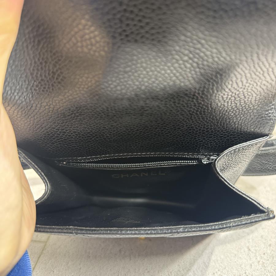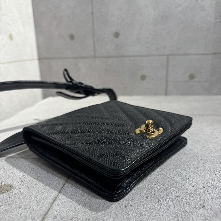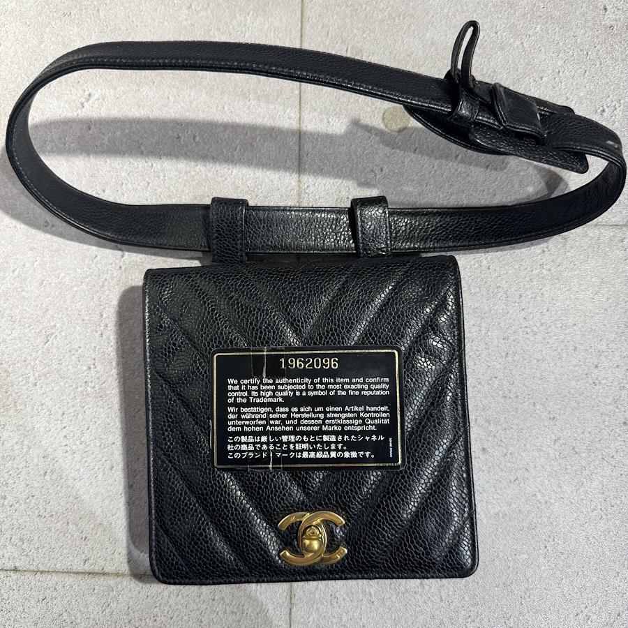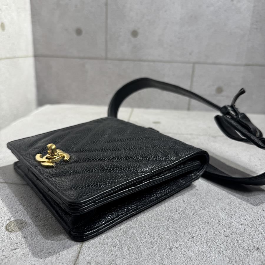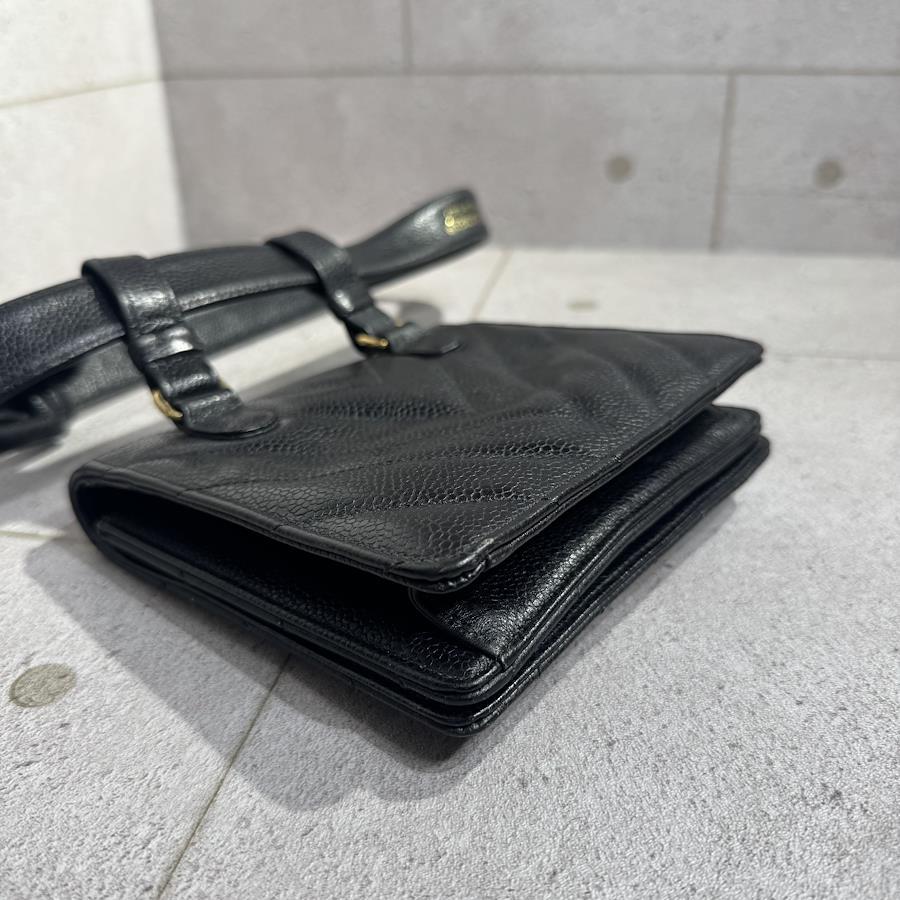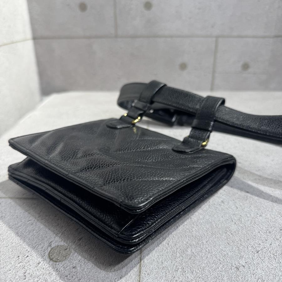 ブランド名:シャネル素材:キャビアスキンサイズ:約 H 14.5 cm×W 14.5cm×D 3cmチェーン長さ:約 60cm年代:1番台 1989年ー1991年製造付属品:ギャランティカード、シリアルシール状態:Aランク 使用感の少ない綺麗な中古品
