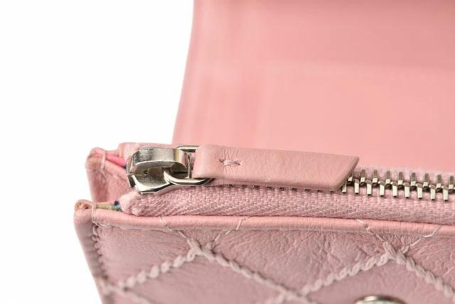 CHANEL 折財布 ワイルドステッチ マトラッセ ミニ ピンク
