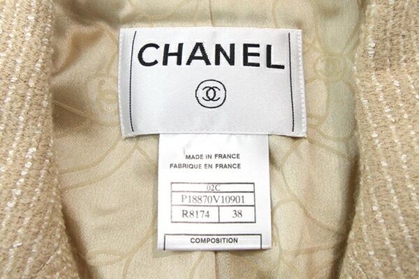シャネルレディースセットアップP18870ベージュサイズ3802C2002年モデル中古スーツジャケットスカートフレアココマークツイードレディースファッションアパレルCHANEL