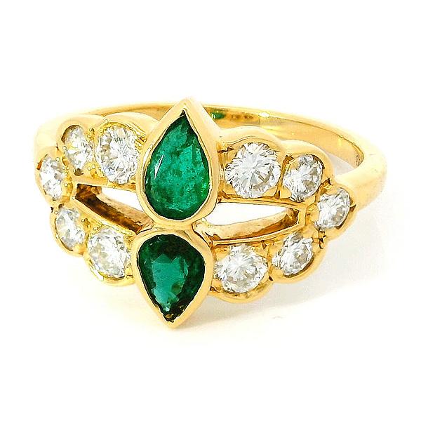 Chaumet Emerald and Diamond Ring, 18K Yellow Gold, Size 9. #4.3/4(US) / 49(EU) / 9(JP) P0044572