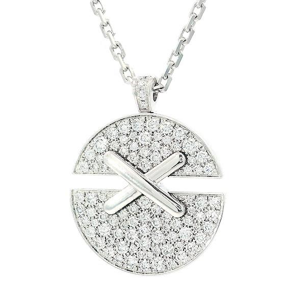 Category: JewelryType: NecklaceBrand: ChaumetChain Length: 54.5cmHead Size: 17.9mm DiameterGemstone: DiamondStamp: CHAUMET Au750 24*****Weight: 10.4gMaterial: 18K White GoldList Price: -Accessories: Box, Warranty CardCondition: A