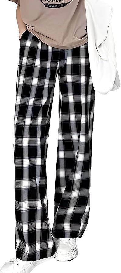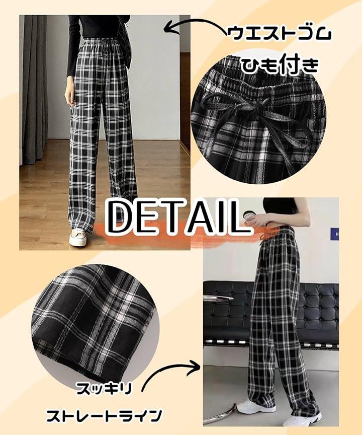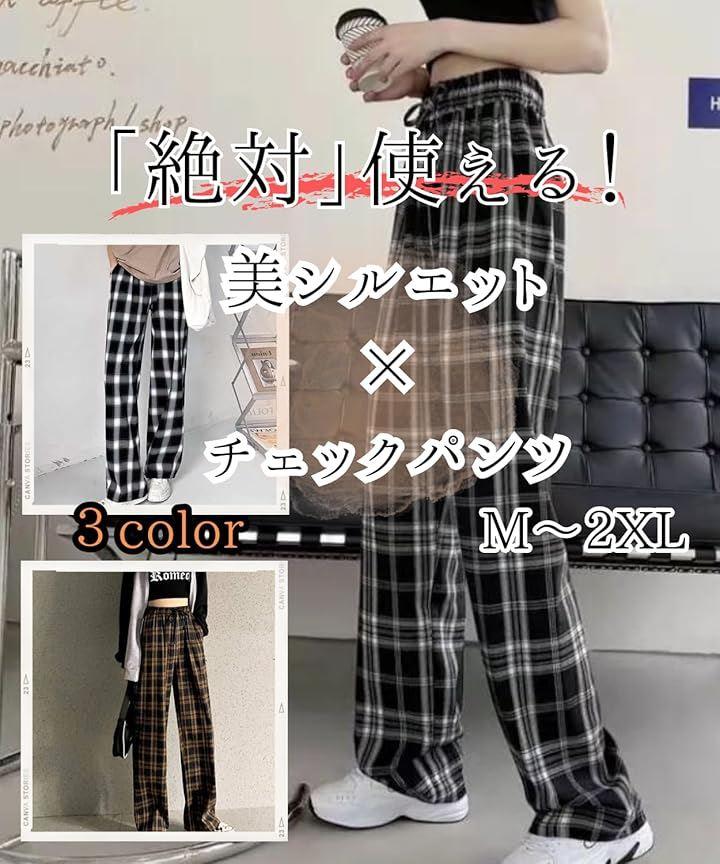 秋冬らしいシックな色合いのチェック柄のパンツ。