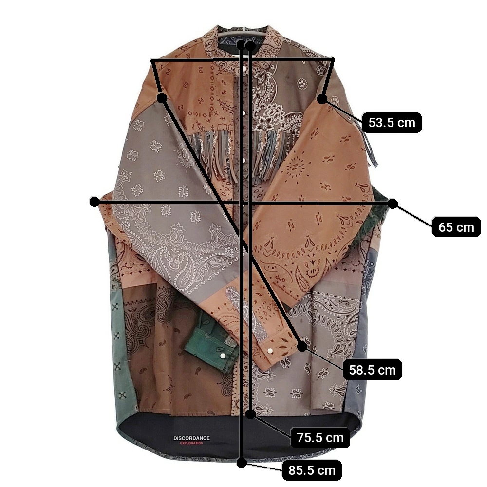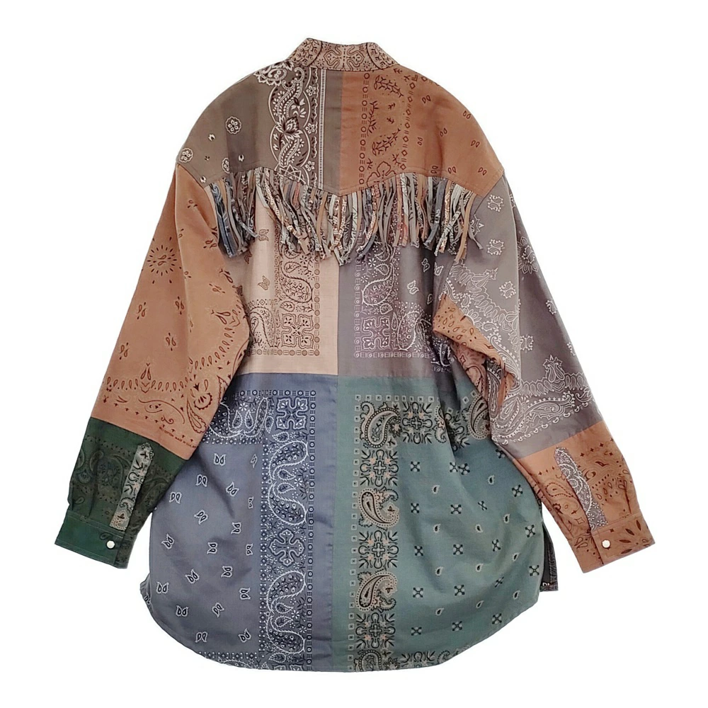 アイテム長袖シャツ BANDANA PATCHWORK FRINGE SHIRT LS リメイク 再構築