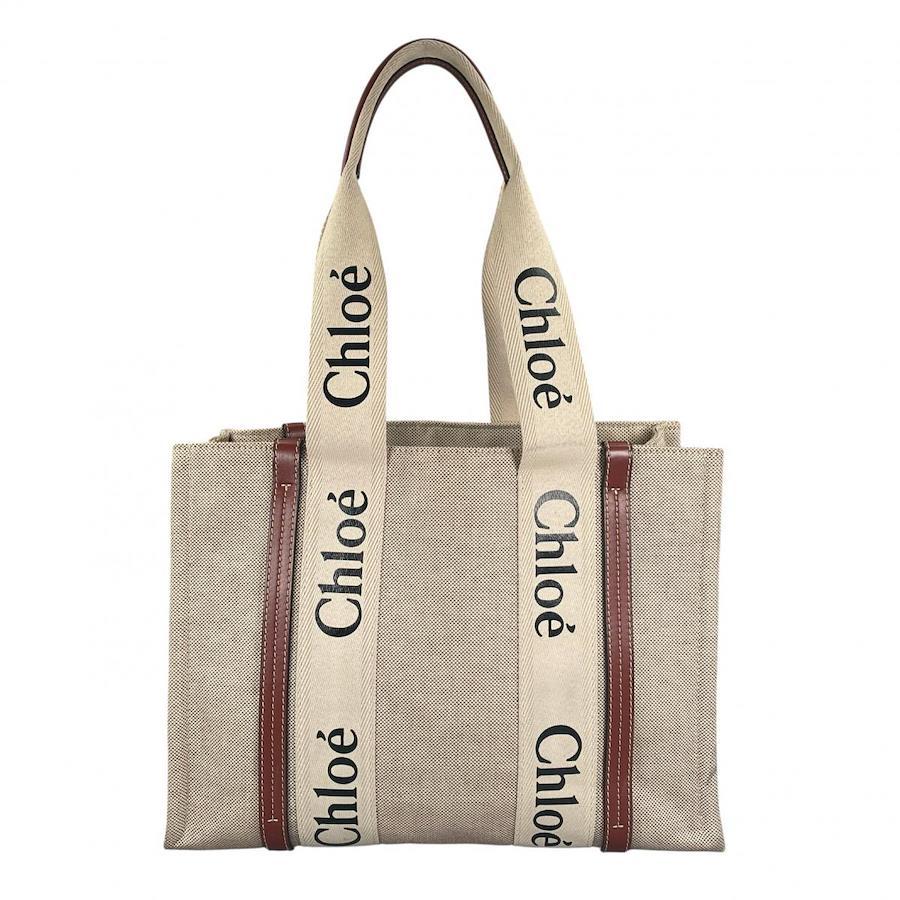 | ハンドバッグChloe ミディアムトートバッグWoody シャイニーカーフスキンレディース ベージュ |