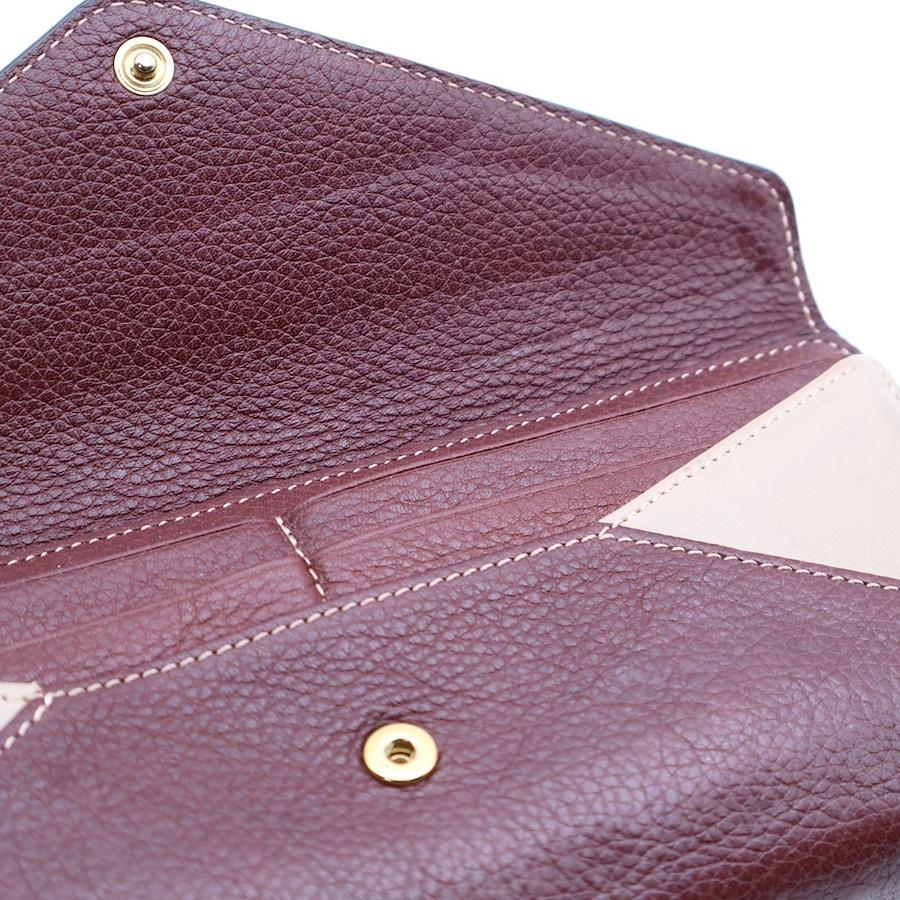 [モデル]レザー二つ折り長財布 ラウンドジップウォレット ワイン×ピンク