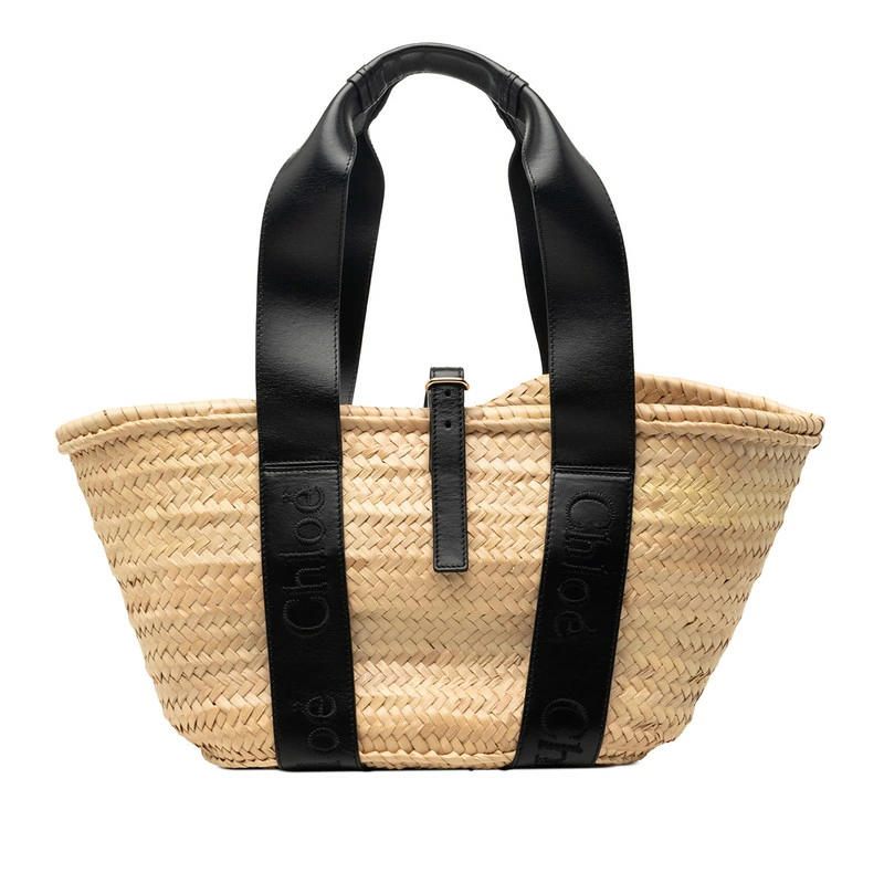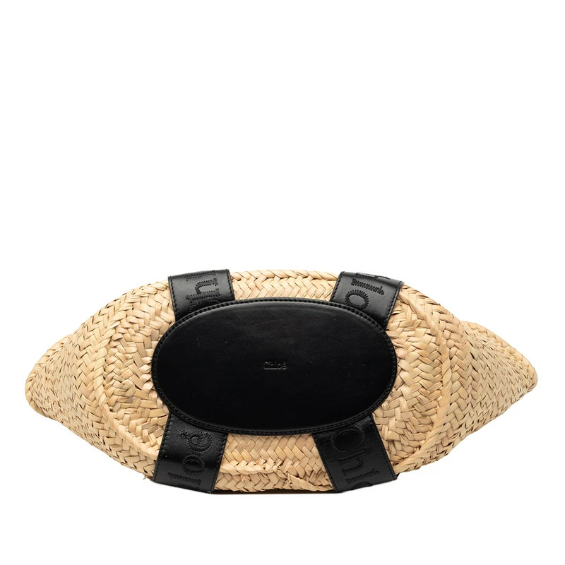 - クロエ バスケット ハンドバッグ カゴバッグ ベージュ ブラック ラフィア レザー レディース Chloe 【中古】
