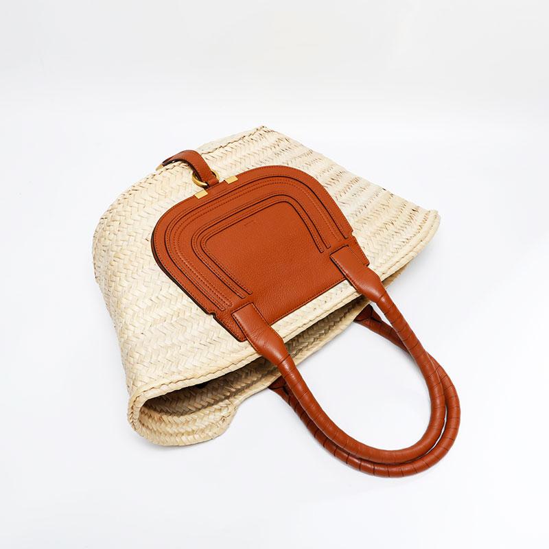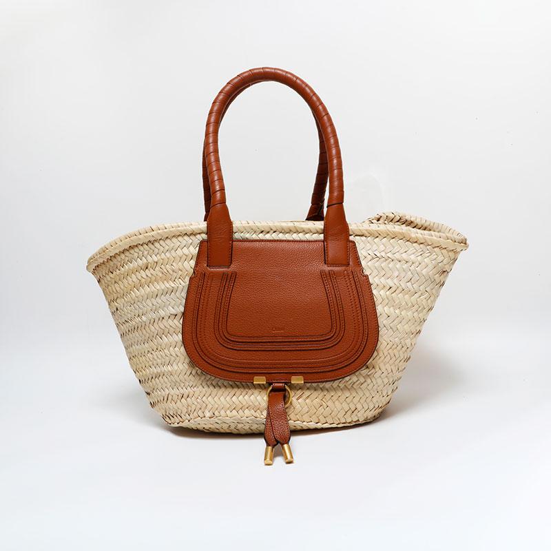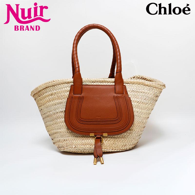 Chloe Marcy Raffia and Straw Shoulder Bag, Beige, WS21808