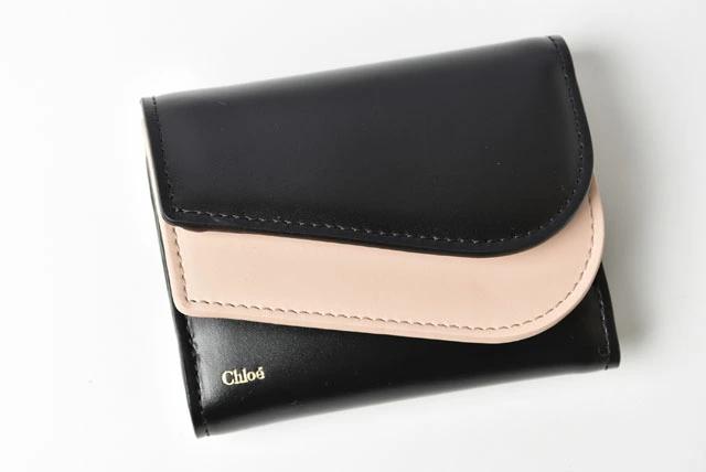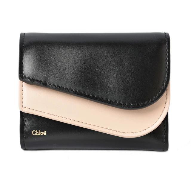 クロエより、KIKIの折財布/ミニウォレットです。やや光沢のあるレザーを使用したバイカラーにゴールドのロゴがさり気ない。コンパクトながらも程よい収納。このラインを象徴する曲線的なラインが印象的。人気のダブルホックタイプ。コンパクトながらとっても機能的!必要なものをコンパクトに収納できるサイズです。