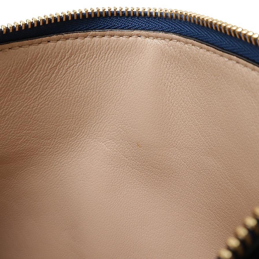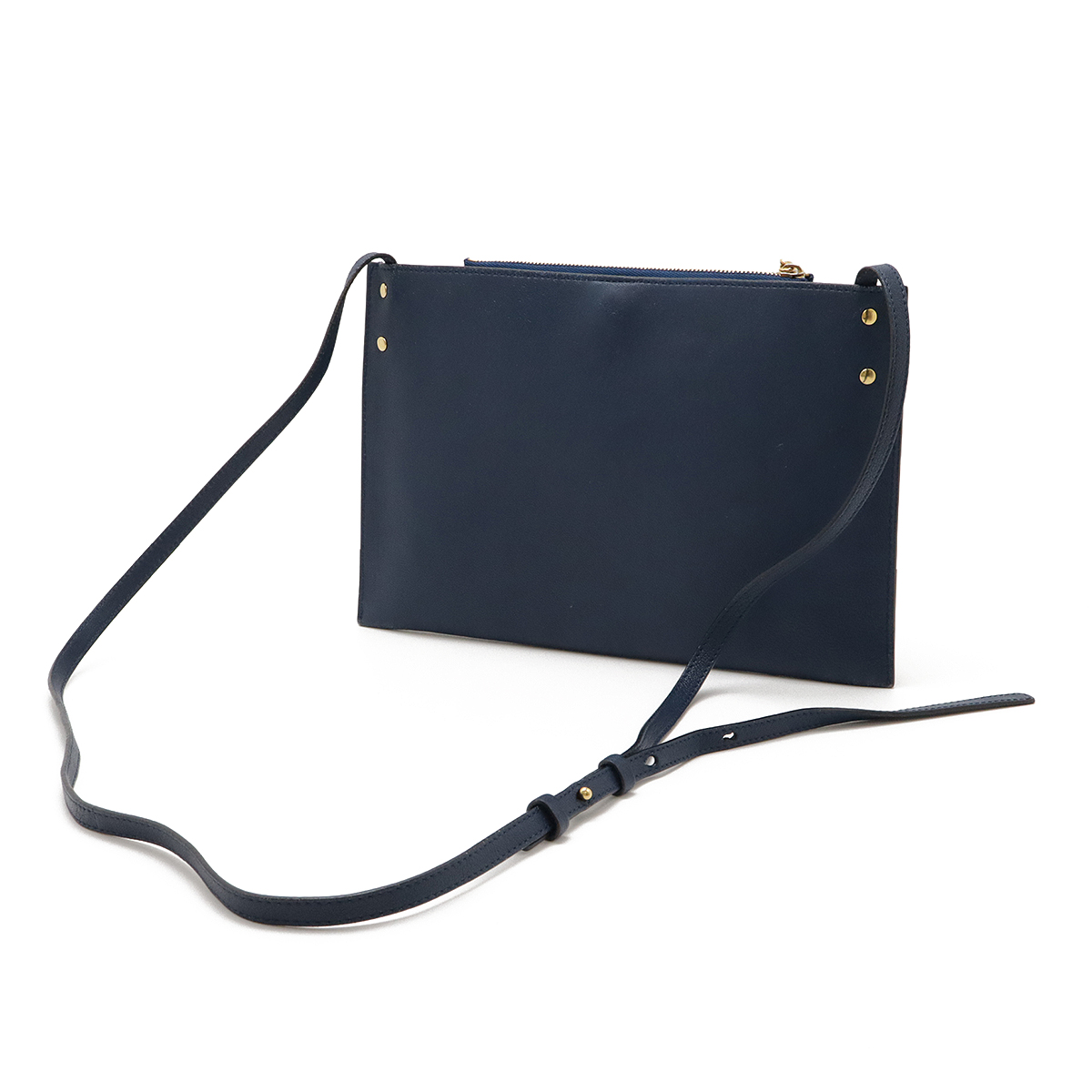 【商品説明】[サイズ]W26.5cm H17.5cm ショルダーストラップ最長約120cm(3段階調節可、金具含む)[材質]レザー[カラー]ブルー/ネイビー[仕様]外側ファスナーポケット1[付属品]保存袋[重さ]約250g