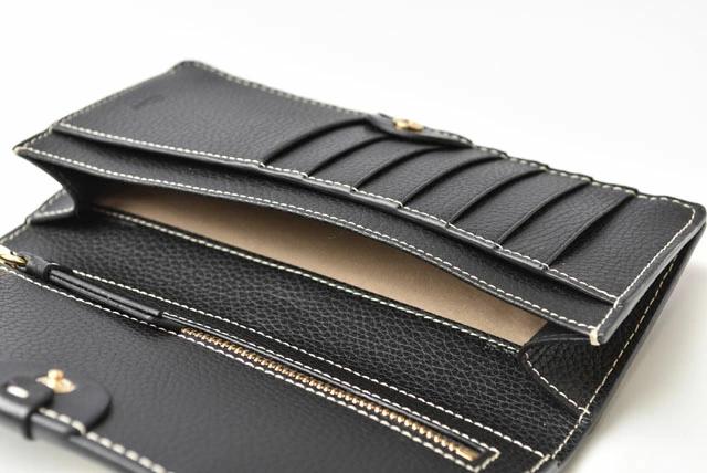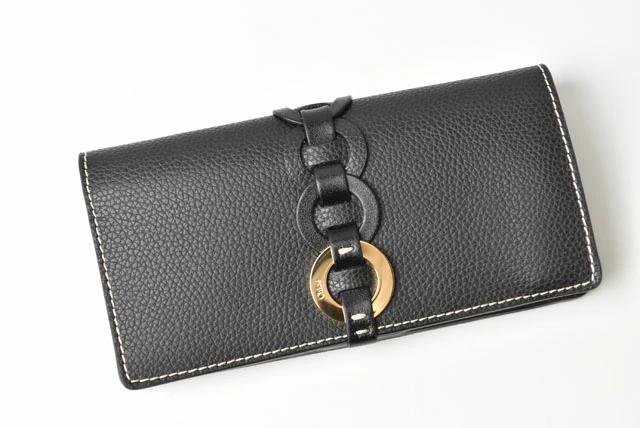 クロエより、DARRYL/ダリルライン、長財布です。メタルに入ったロゴは高級感があります。このラインを象徴する曲線的なラインとループディテールが印象的。二種類の素材を使用したループディテールを採用したフラップタイプのロングウォレット。カラーのレザーと曲線のラインが魅力。必要なものをスマートに収納できるサイズです。