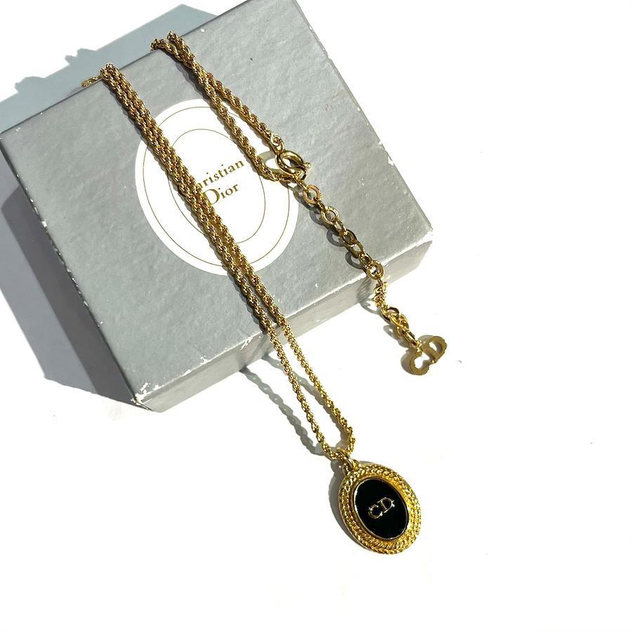Christian Dior ネックレス / ディオール ヴィンテージ アクセサリー / CDロゴ ネックレス / ブラック ゴールド / 福岡 ヴィンテージショップ / 天神 セレクトショップ / Dior アクセサリー レディース / 80年代 ヴィンテージ / Dior jewelry vintage / J&marmie vintage select