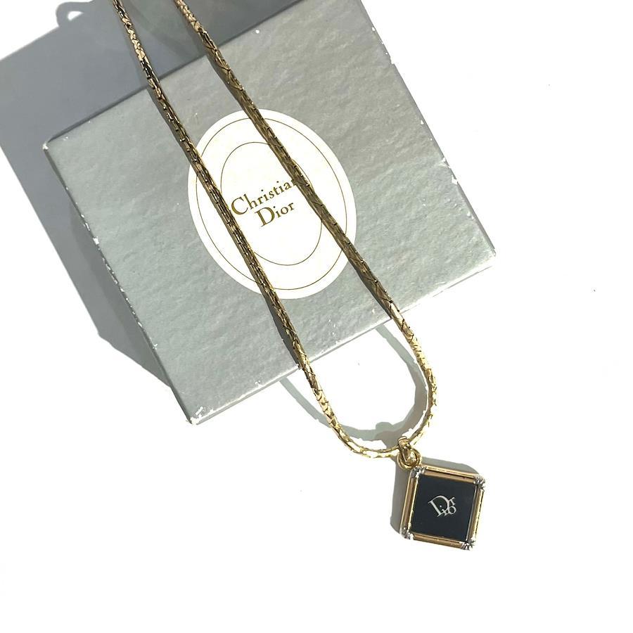 ChristianDior/ディオール/ヴィンテージネックレス/ブラックネックレス/スクエアモチーフ/福岡ヴィンテージショップ/J&marmie/天神アクセサリー/福岡アクセサリー/レトロジュエリー/ディオールヴィンテージ/福岡セレクトショップ/ディオールアクセサリー