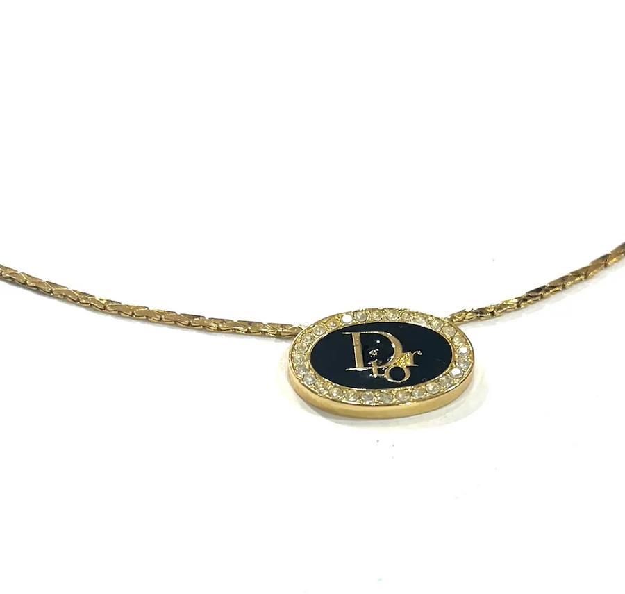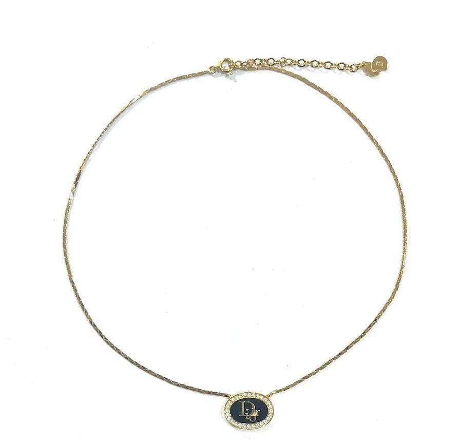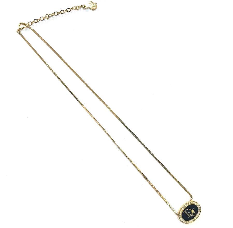 【ブランド】Christian Dior【商品名】CDロゴ ブラックオーバルストーンネックレス【カラー】ブラック×ゴールド【素材】メッキ金属【サイズ】全長44cm/トップ約1.9cm【付属品】なし