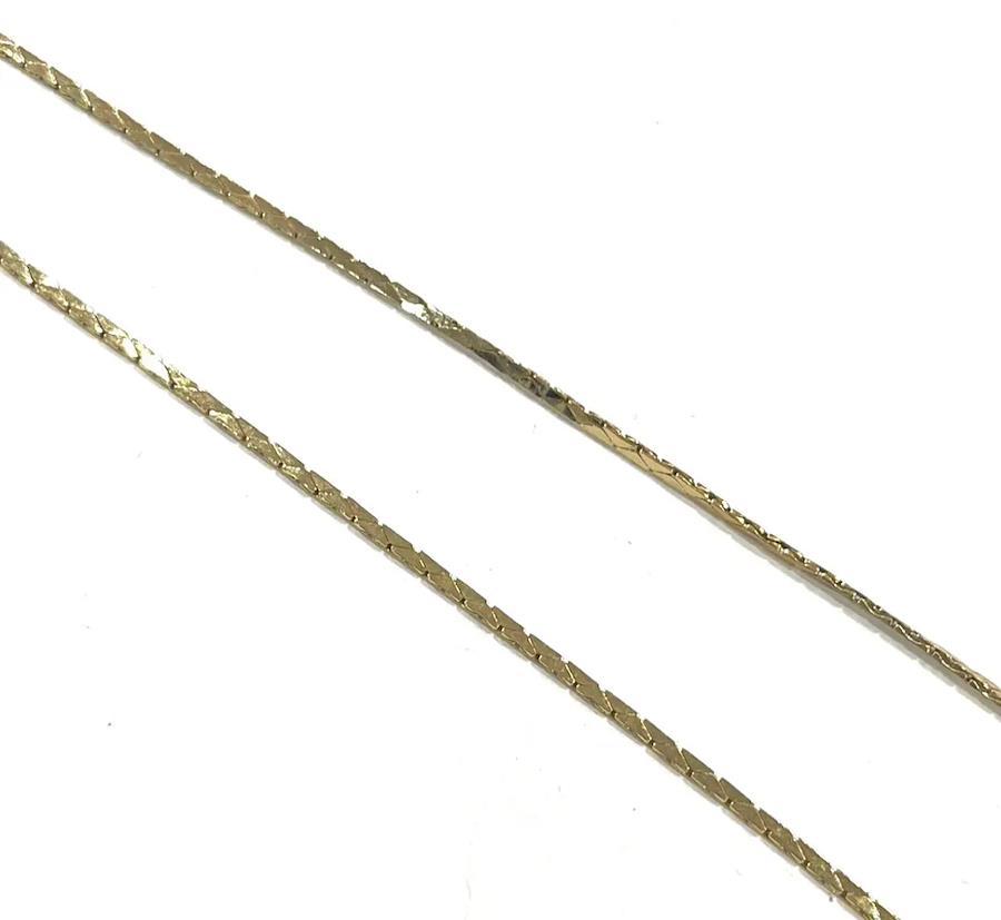 チェーンはフラットなプレート状の輝きが特徴。光を面で反射するため、通常のチェーンよりも存在感があり、首元にすっと一本通すだけで完成度が一気に高まります。