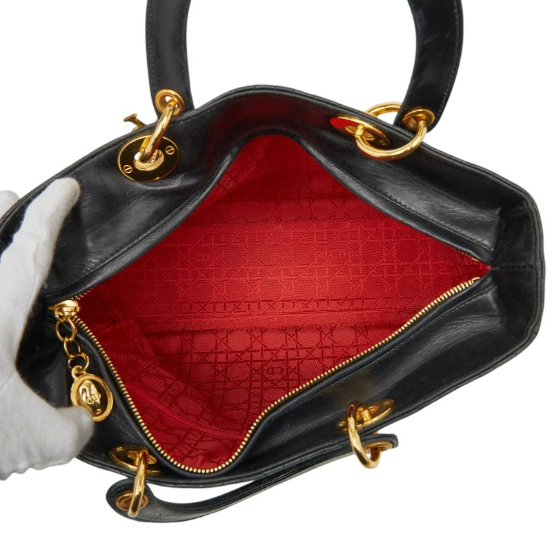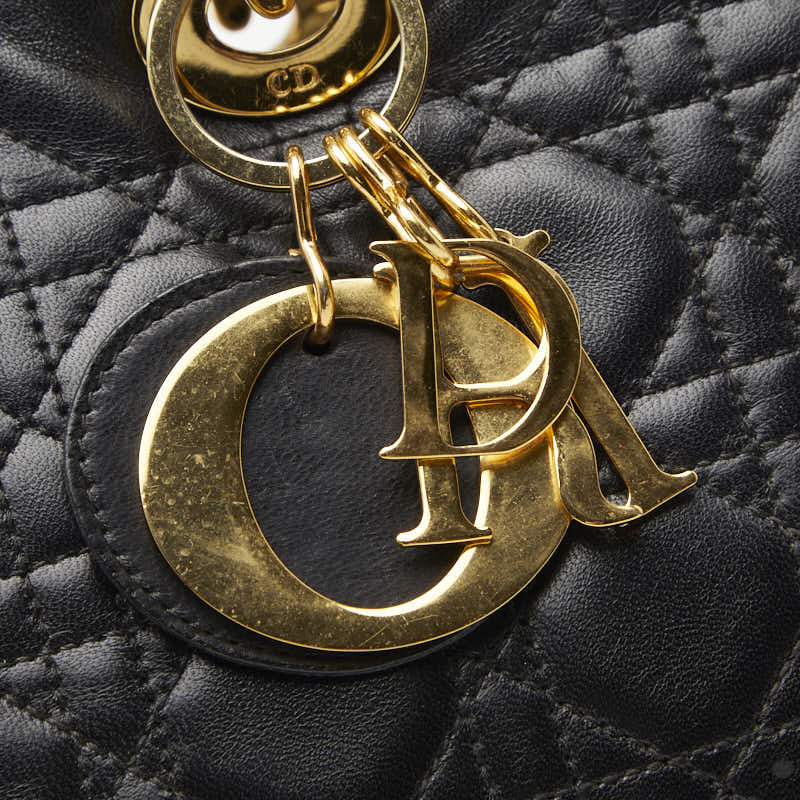 - クリスチャンディオール カナージュ ハンドバッグ ブラック レザー レディース Christian Dior 【中古】