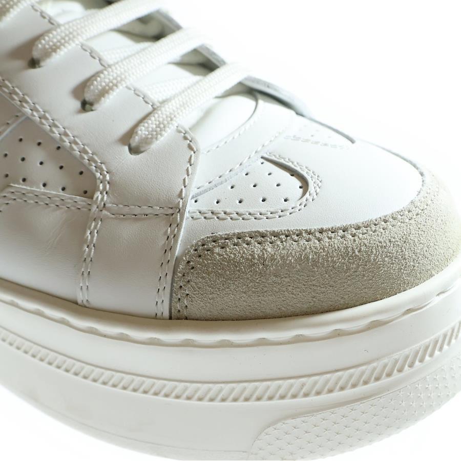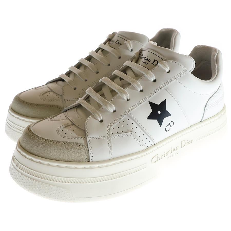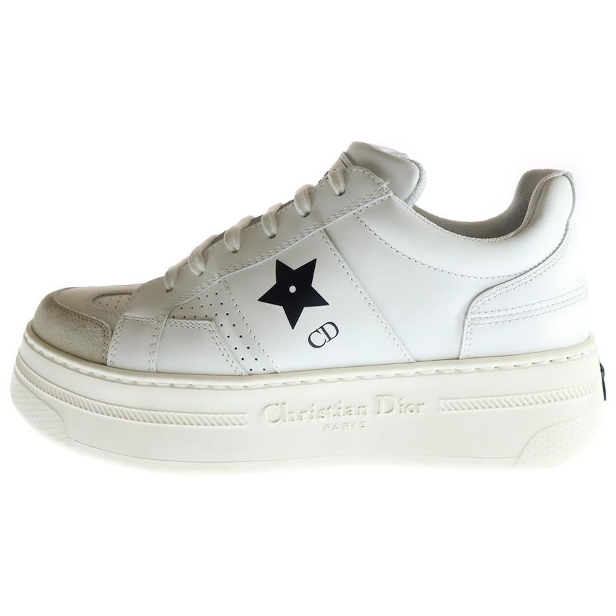 [モデル]CDロゴプリント スター プラットフォーム レザー 厚底スニーカー レースアップ ローカットシューズ ホワイト レディース