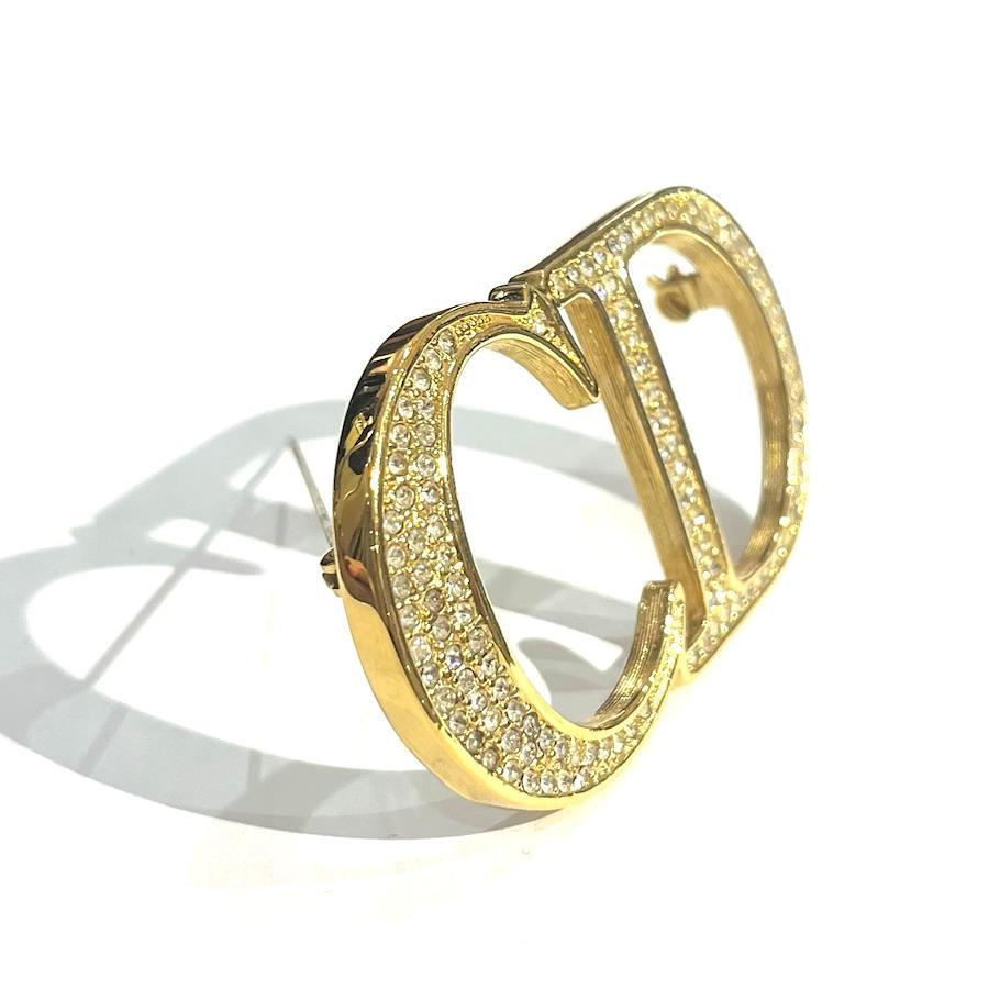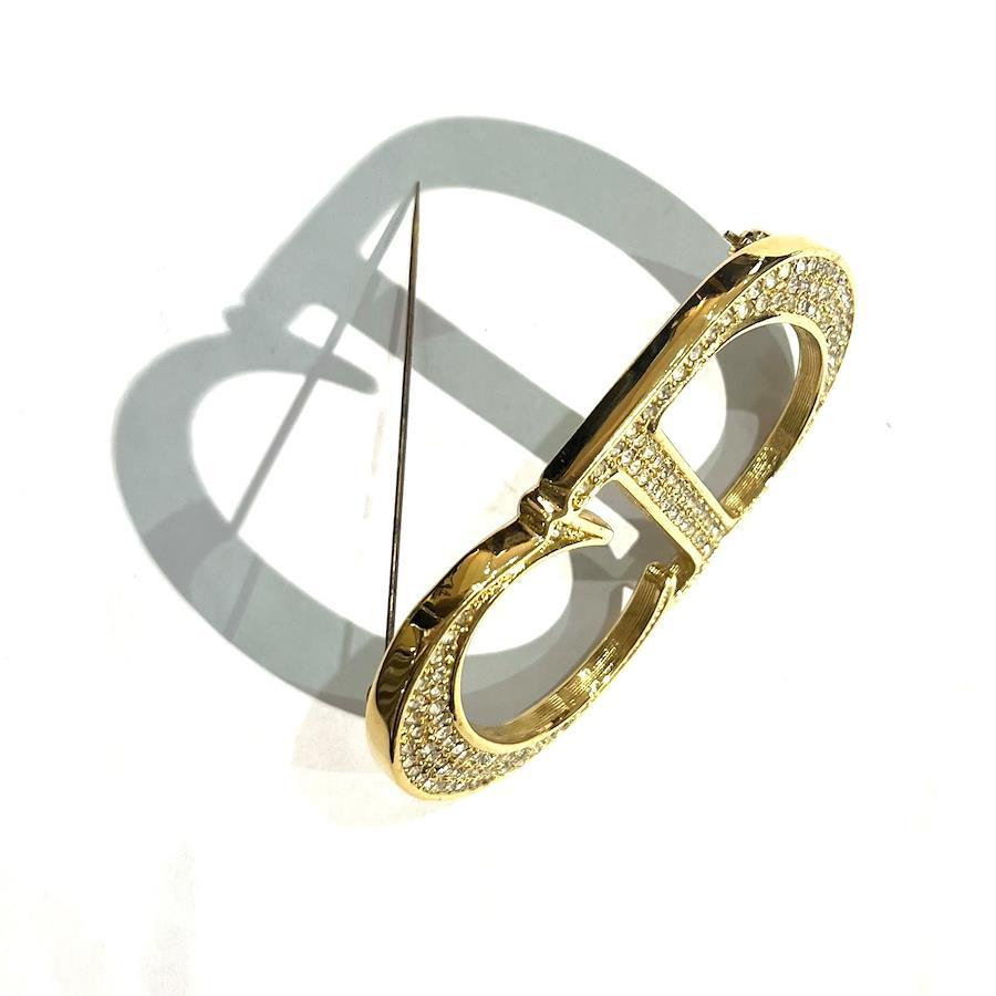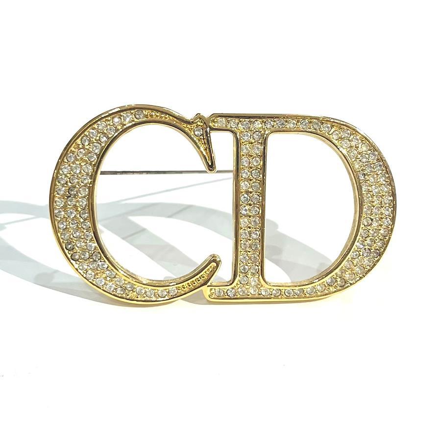 [Christian Dior] CD Logo Rhinestone Brooch / Gold / 6.2 x 3.4 cm / Vintage Dior Accessories - The iconic "CD" that shines through the ages -