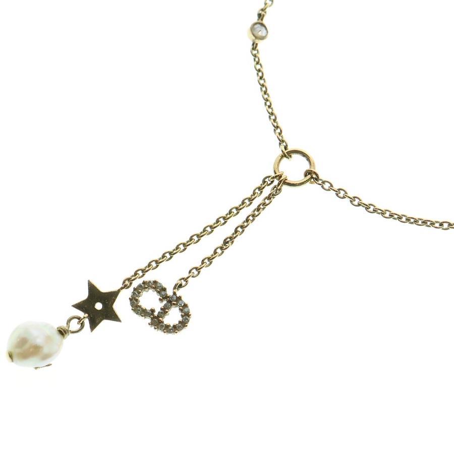 [モデル]CDロゴ ラインストーン パールネックレス ペンダント ゴールド GP