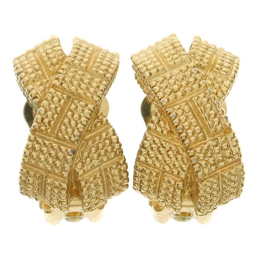 Christian Dior Cross Motif Earrings Vintage Gold GP - Gold