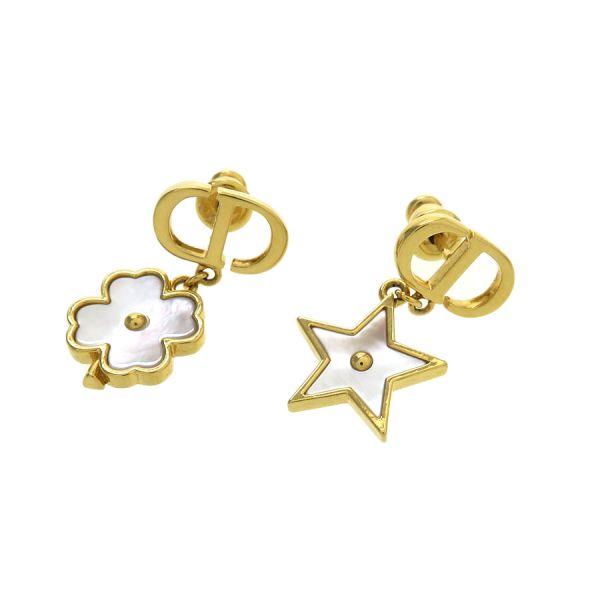 クリスチャン・ディオールのデスティニー ピアスのご紹介です!CDシグネチャーの下に星や四つ葉のクローバーのフォルムの飾り部分にシェル(白蝶貝)があしらわれています。☆状態は、表面の小傷・くすみ、ピンの歪み・メッキ剥げが少々見受けられますが、きれい目なお品ですよ!いかがですか!?